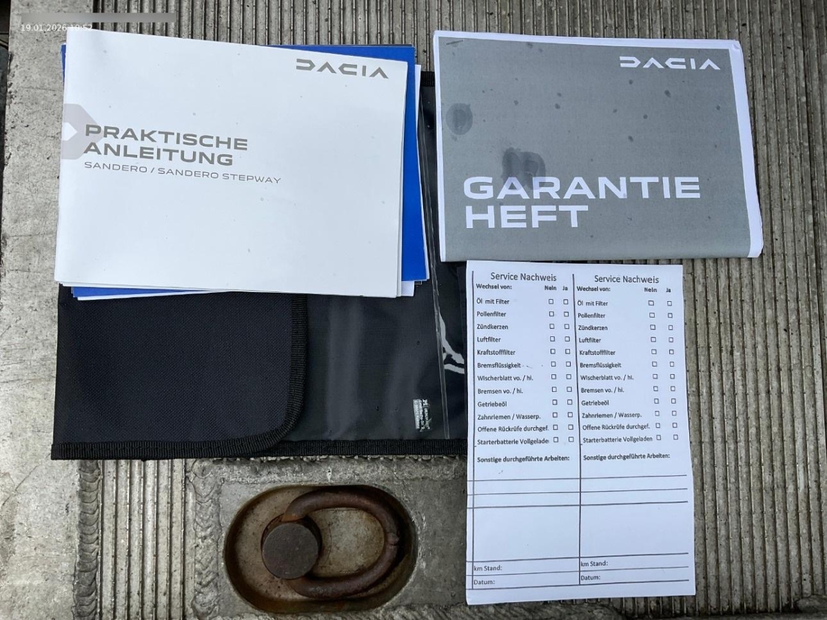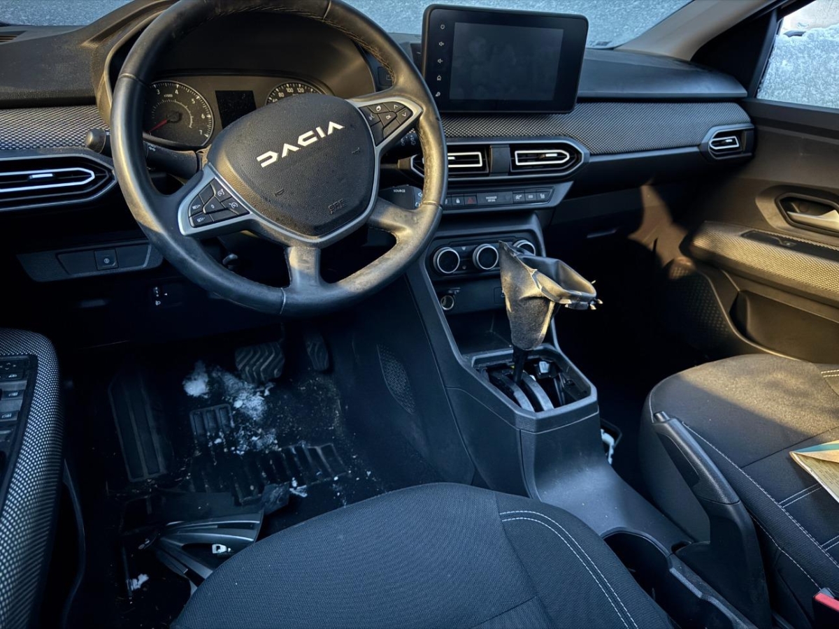 Assist: Aktiver Notfall-Bremsassistent (AEBS), Polster: Expression in Schwarz-Grau mit Ziernähten in Weiss, Zentralverriegelung mit Funkfernbedienung und automatischer Türverriegelung nach dem Anfahren, Sitze: Rücksitzbank 1/3 – 2/3 umklappbar, Sitze: Fahrersitz höhenverstellbar mit Armlehne, Media: Multimediasystem Media Display – Radio DAB+, FM und AM, – weitere Audioquelle über USB oder Bluetooth, – Bluetooth-Freisprecheinrichtung, – Lenkradfernbedienung, – USB-Anschluss neben dem Touchscreen, – 8-Zoll-Touchscreen und Smartphone-Integration via Apple Carplay oder Android Auto, – 4 Lautsprecher, Räder: 16″ Stahlfelgen Design Atara 195/55 R16, Assist: Müdigkeitswarnen (DDAW), Leselicht vorne, Antiblockiersystem (ABS), Sitze: ISOFIX-Kindersitzbefestigung auf den hinteren Aussenplätzen, Dekor: Zierrahmen in Mattchrom an den Lüftungsdüsen, Airbag: Windowairbags vorne und hinten, Assist: Notruf-Funktion (eCall), Start/Stop-Funktion, Garantie: Dacia Garantie: 3 Jahre oder 100’000 km (ab 1. Inv.), Garantie: Dacia Garantie: 6 Jahre Durchrostungsgarantie, Getriebe: CVT-Automatik-getriebe, Räder: Reifenreparatur-Kit, Assist: Einparkhilfe hinten akustisch, Wegfahrsperre elektronisch, Servolenkung elektrisch, Eco-Mode zur Reichweitenoptimierung, Schaltpunktanzeige, Lenkrad : Höhenverstellbares Lenkrad, Dekor: Stoffeinsatz Armaturenbrett und vordere Türen, Mattchrom an Lenkrad, Schaltung und Türöffnern, Lenkrad: Lenkrad tiefenverstellbar, Assist: Verkehrszeichenerkennung (TSR), Assist: Berganfahrhilfe, Assist: ESP (Electronisches Stabilitätsprogramm), Räder: Reifendruckkontrollsystem, Dreipunkt-Sicherheitsgurte auf allen Plätzen, Assist: Spurhalteassistent (LDWS), Elektrische Fensterheber vorne mit Impulsschaltung Fahrerseite, Klima: Manuelle Klimaanlage mit Pollenfilter, Aussenspiegel in Wagenfarbe, Airbag: Beifahrerairbag abschaltbar, Airbag: Frontairbags und Seitenairbags vorne, Licht: Halogen-Fernlicht, Elektrische Fensterheber hinten, Assist: Regensensor, Aussenspiegel elektrisch verstellbar und beheizbar, Licht: Nebelscheinwerfer, Licht: Automatisches LED-Tagfahr- und Abblendlicht, Assist: Tempomat mit Geschwindigkeitsbegrenzer, Garantie: Dacia Garantie: 2 Jahre Lackgarantie, Lackierung: Uni-Lackierung, Bordcomputer, Sitze: 3 Kopfstützen hinten höhenverstellbar, Sitze: Kopfstützen vorne fix, Lenkrad: Lenkrad in Lederoptik, Sitze: Rücksitzlehne umklappbar, Innenleuchte vorne