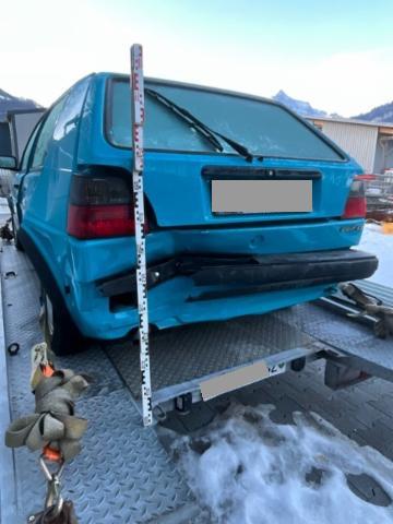 Heck Heck links eingedrückt. Seitenwand hinten links eingedrückt/ausgestaucht. Kofferboden eingedrückt. Heckklappe eingedrückt. |