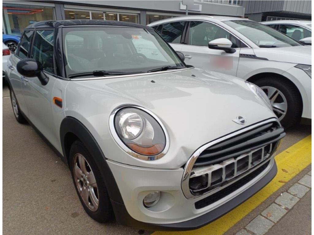 Cornering Brake Control (CBC), Polster: Stoff-Ausstattung, Dynamische Bremsleuchten, Leuchtweitenregulierung elektrisch, 3-Punkt-Sicherheitsgurte auf allen Plätzen, Start/Stop-Funktion, Elektronischer Bremskraftverteilung EBD, Drehzahlmesser, Innenraumbeleuchtung, Dekor: Interieuroberflächen Hazy Grey, Licht: Halogenscheinwerfer, Abschliessbare Radschrauben, Licht: Nebelschlussleuchte, Sitze: Rücksitzlehne geteilt abklappbar, Dynamische Stabilitätskontrolle (DSC), Airbag: Airbag Fahrer und Beifahrer, Veloursfussmatten vorne und hinten, Crash-Sensor, Heckscheiben-Wisch-/Waschanlage mit, Lenkrad: Lenkrad längs- und höhenverstellbar, Dachhimmel in grau, Airbag Beifahrer deaktivierbar, Dachspoiler, Cupholder, Kopfstützen hinten, Servotronic, Ablagefach, Media: USB-Anschluss, Dekor: Colour Line Carbon Black, Drittes Bremslicht, Befestigungsösen im Laderaum, Leichtmetallräder Heli Spoke 15J, silber, Katalysator geregelt, Lenkrad: Multifunktion für Lenkrad, Elektrische Fensterheber vorne, Türgriffe innen verchromt, Lackierung: Uni-Lackierung, ISOFIX Kindersitzvorrichtung, Start-/Stop-Knopf, Türgriffe aussen verchromt, Zentralverriegelung mit Fernbedienung, Park Distance Control hinten, Antiblockiersystem (ABS), Ablagenpaket, Verbandskasten, Bordcomputer, Media: Bluetooth Freisprecheinrichtung, Sitze: Vordersitze höhenverstellbar, Aussenspiegel in Wagenfarbe, Aux-In Anschluss, Wegfahrsperre elektronisch, Lenkrad: Sport-Lederlenkrad, Klimatisierungsautomatik, Gurtstraffer vorne, Reifendruck-Kontrollanzeige, Einstiegsschienen, Licht: Tagfahrlicht, MINI Mobility System, Laderaumbeleuchtung, Heckscheibenheizung, Licht: Abblendlichtausschaltverzögerung ‘Follow me home’, Nichtraucherausführung, Getriebe: 6-Gang-Getriebe