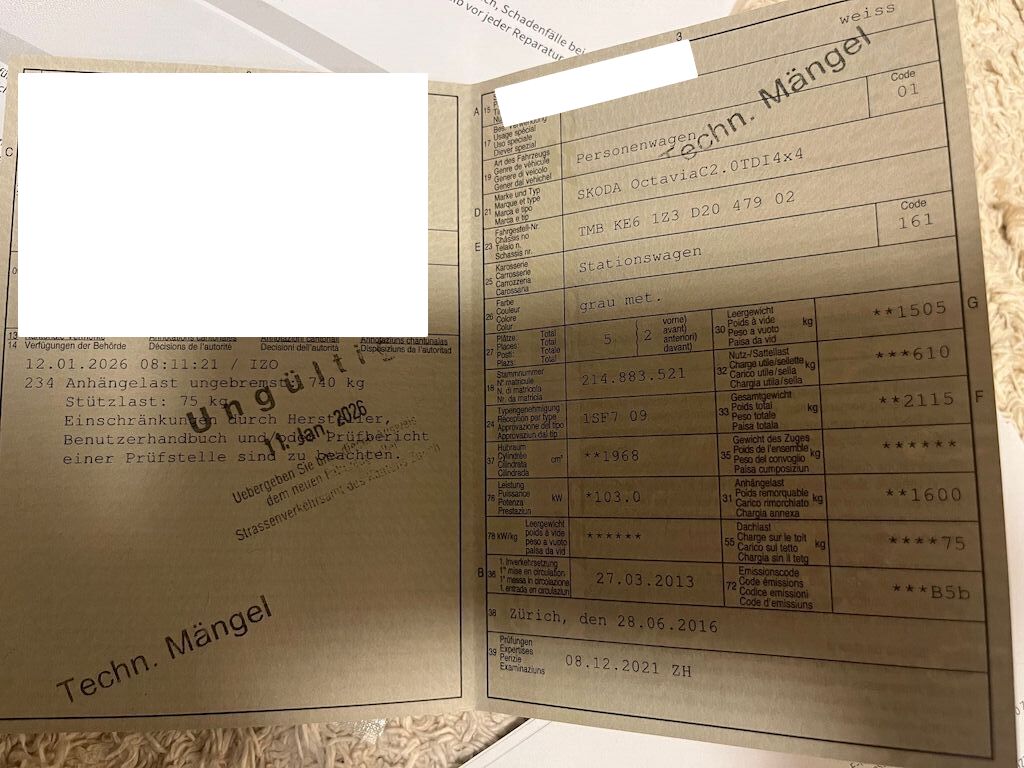 Keine technische Prüfung (Werkstatttest) vorgenommen