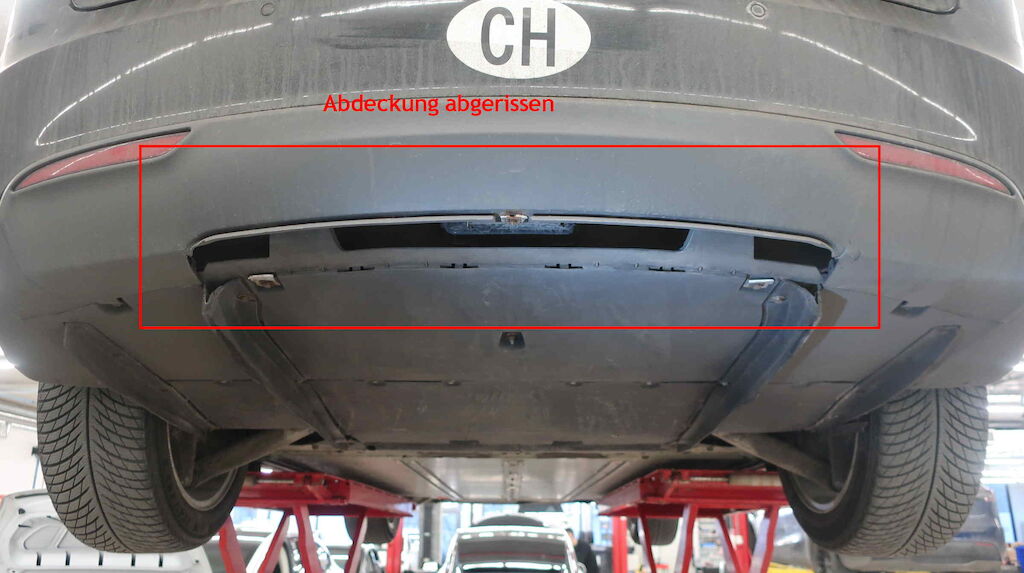 Abdeckung Stosstange hinten unten abgerissen.