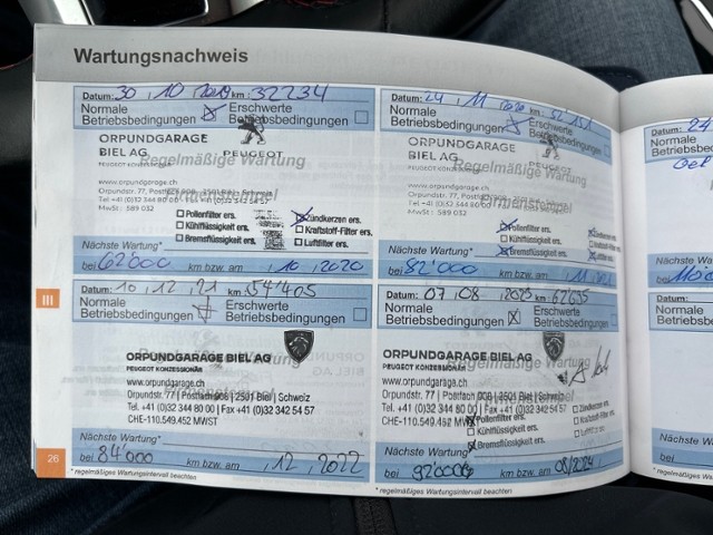 Ausstattung Serienaustattung Airbag Fahrer und Beifahrerseite Seitenairbag Fahrer und Beifahrerseite ESP Elektronisches Stabilitätsprogramm Kopfairbag vorne und hinten ABS und EBV Elektr. Bremskraftverteilung Leichtmetallfelgen 18″ Sport-Lederlenkrad Deaktivierung Beifahrerairbag Lendenwirbelstützen Vordersitze Aussenspiegel elektrisch verstellbar/ heizbar und anklappbar Seitenscheiben im Fond und Heckscheibe getönt Pack Visibilité Zwei Zonen-Klimaautomatik Tempomat mit Geschwindigkeitsbegrenzer Fahrwerk tiefergelegt Servolenkung geschwindigkeitsabhängig Keyless Schliess- und Startsystem Reifendruck-Sensoren RDS Elektrische Parkbremse Einparkhilfe hinten Pack Dynamic LED-Scheinwerfer Einparkhilfe vorne Hill Assist Details siehe gültige Preisliste des Importeurs Keine Gewähr auf die Angaben der Serienausstattungen Sitzbezüge in Alcantara/ Kunstleder Navigationssystem mit Touchscreen Pack Confort Digitaler Radioempfang DAB+ Garantie 2 Jahre/ unbegrenzte km Sonderausstattung Ausstattung |
