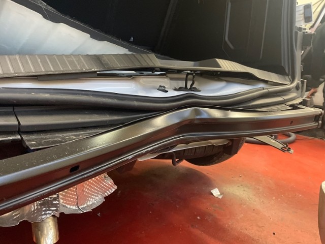 Heckblech eingedrückt.