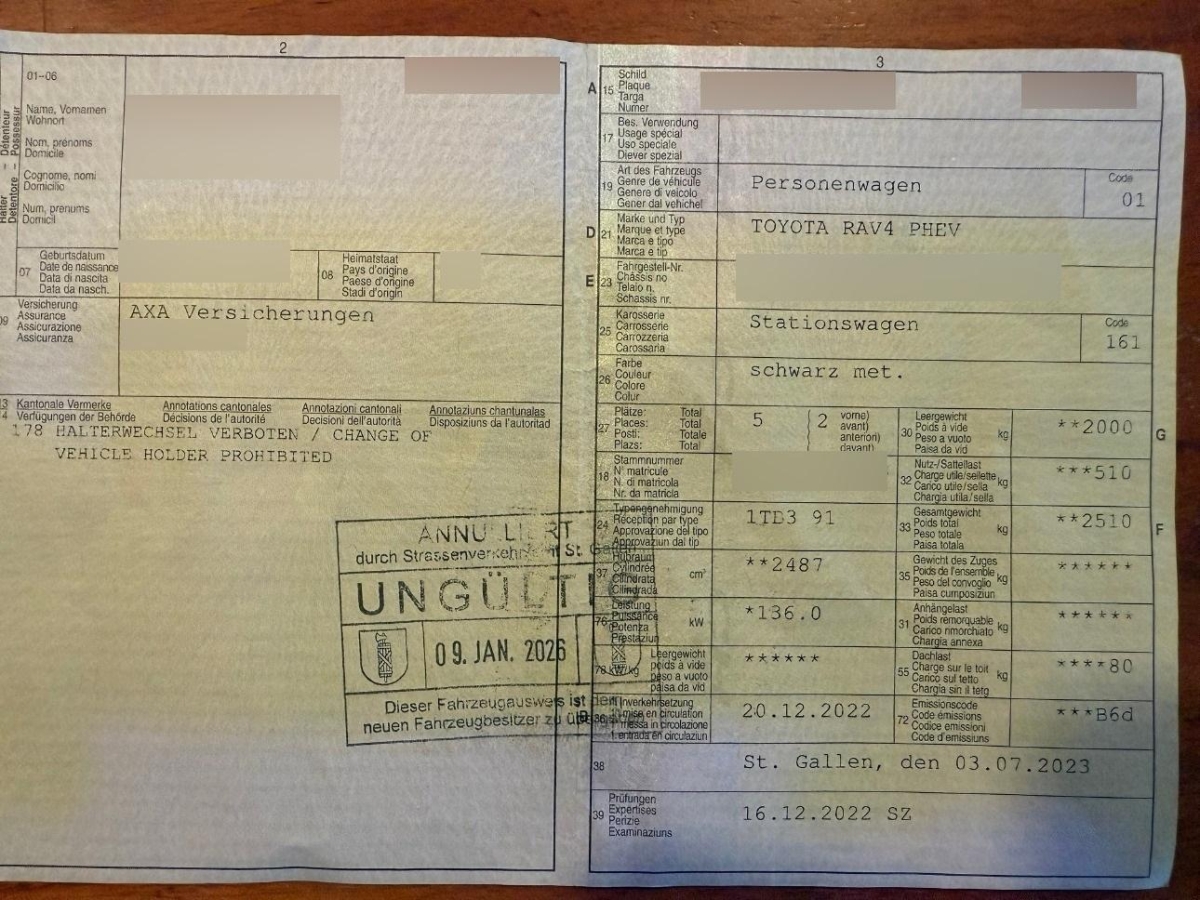 | Fahrzeugausweis | Vorhanden |