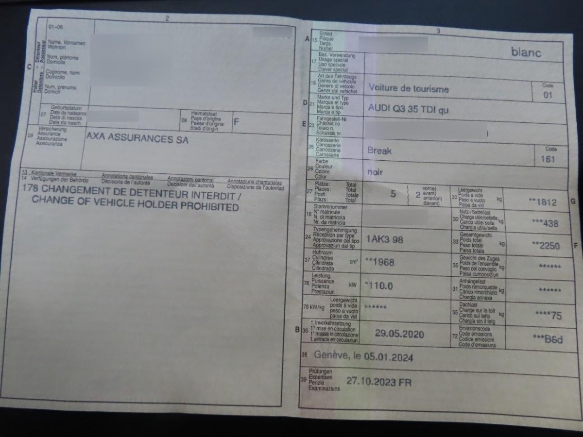 | Fahrzeugausweis | Vorhanden |
