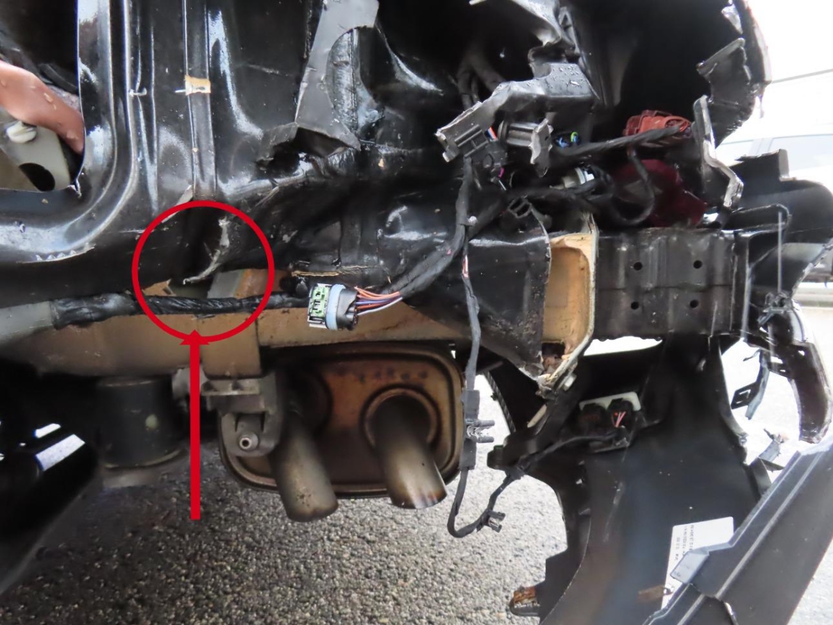 Front, Heck links, Heckblech, Heckdeckel, Hinterachse, Kabelstrang, Kofferraumboden, Kofferraumboden, Kotflügel links, Kühlgitter, Längsträger hinten links, Motorhaube, Rad hinten links, Radaufhängung hinten links, Radhaus hinten links, Rücklicht links, Stossstange hinten, Stosstange vorne, Türe hinten links