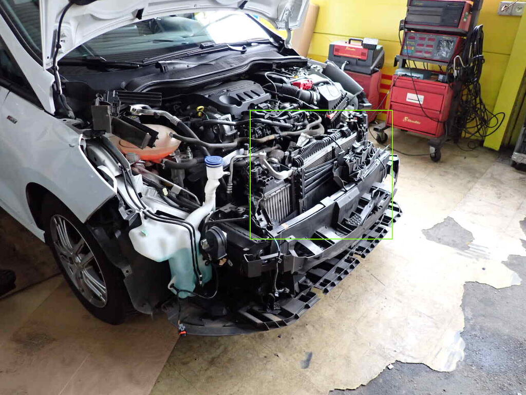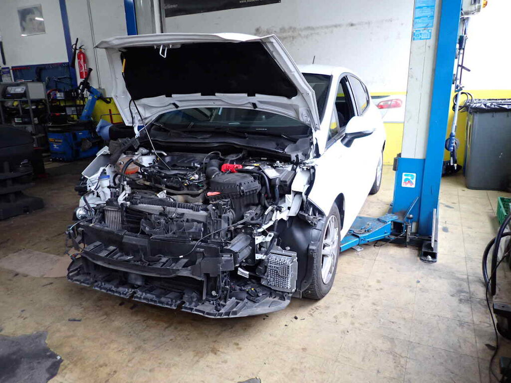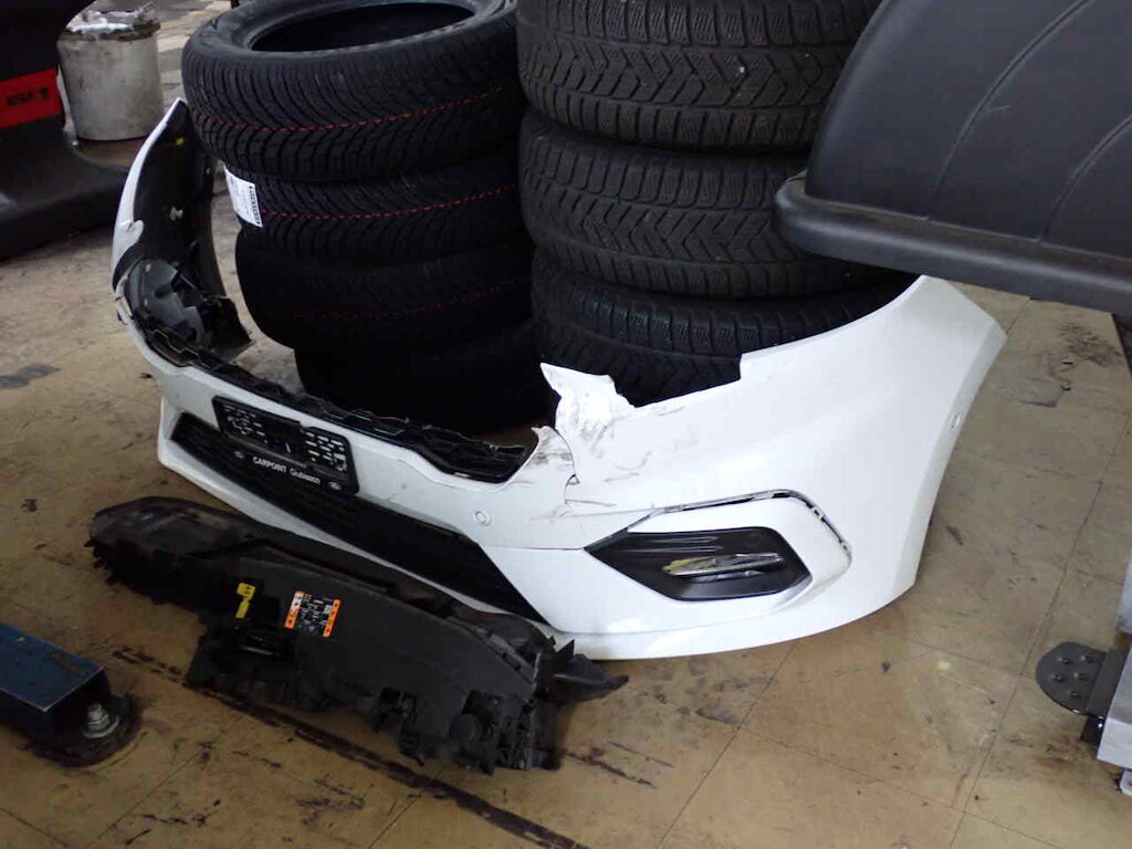 Parte anteriore danneggiata e radiatori danneggiati