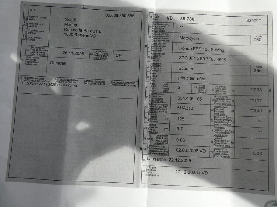 Honda FES 125 S-Wing ID 457759 – REST