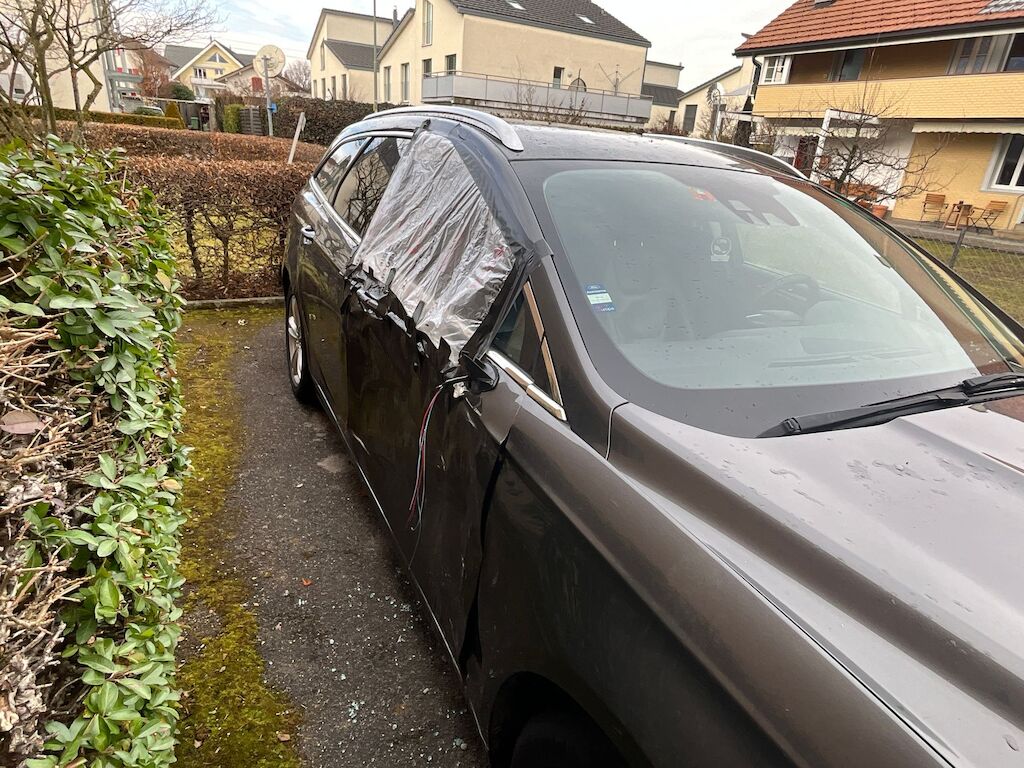 | Fz. wird vom Halter evtl. noch benutzt Risiko Vorderachse Scheibe VR eingeschlagen Fahrzeug ist abgerutscht in Baum; evtl. Hanglage Besichtigungszustand teilweise verschmutzt: nicht abschl. beurteilbare Optik |