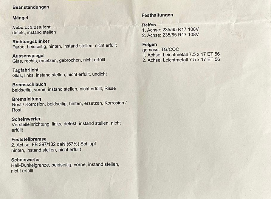 – Keine technische Prüfung (Werkstatttest) vorgenommen