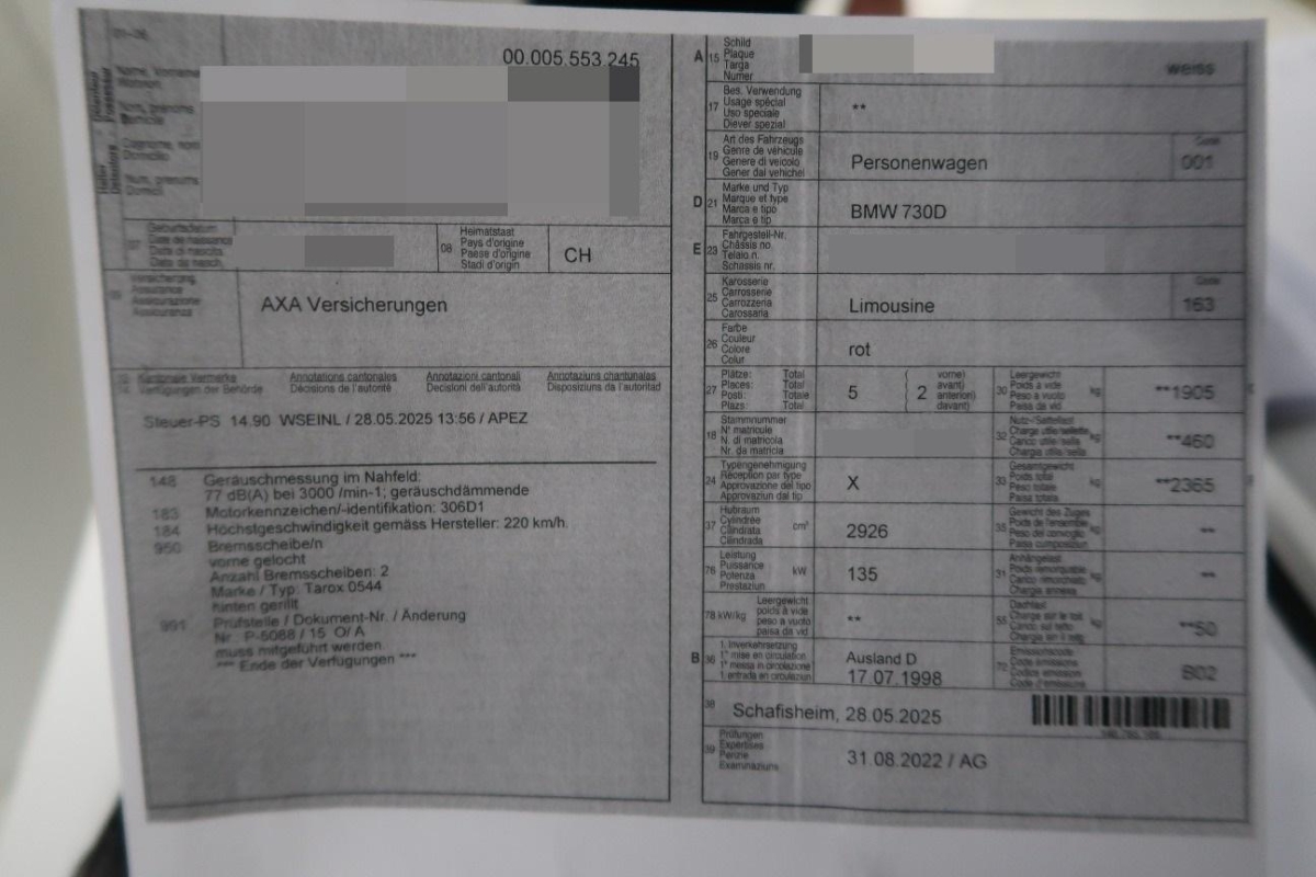 | Fahrzeugausweis | Vorhanden |