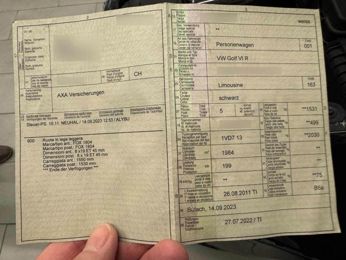 Fahrzeugausweis Vorhanden