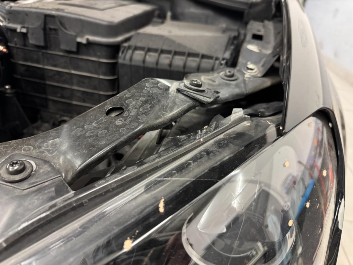 Diverse Anbauteile, Diverse Gebrauchspuren, Front, Front links, Front rechts, Frontblech, Kühler, Kühlgitter, Scheinwerfer links, Scheinwerfer rechts, Schlossträger, Stosstange vorne