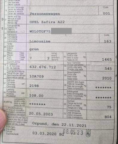 Opel Zafira 2.2i 16V Linea Fresca 176’431 km – SCC