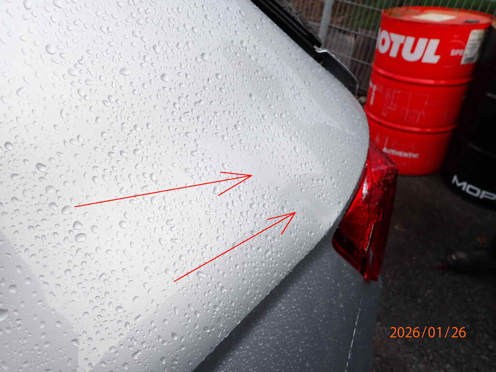 Arrière écrasé. Ailes arrière gauche et droite refoulées. Longeron plié. Toutes les ceintures déclanchées