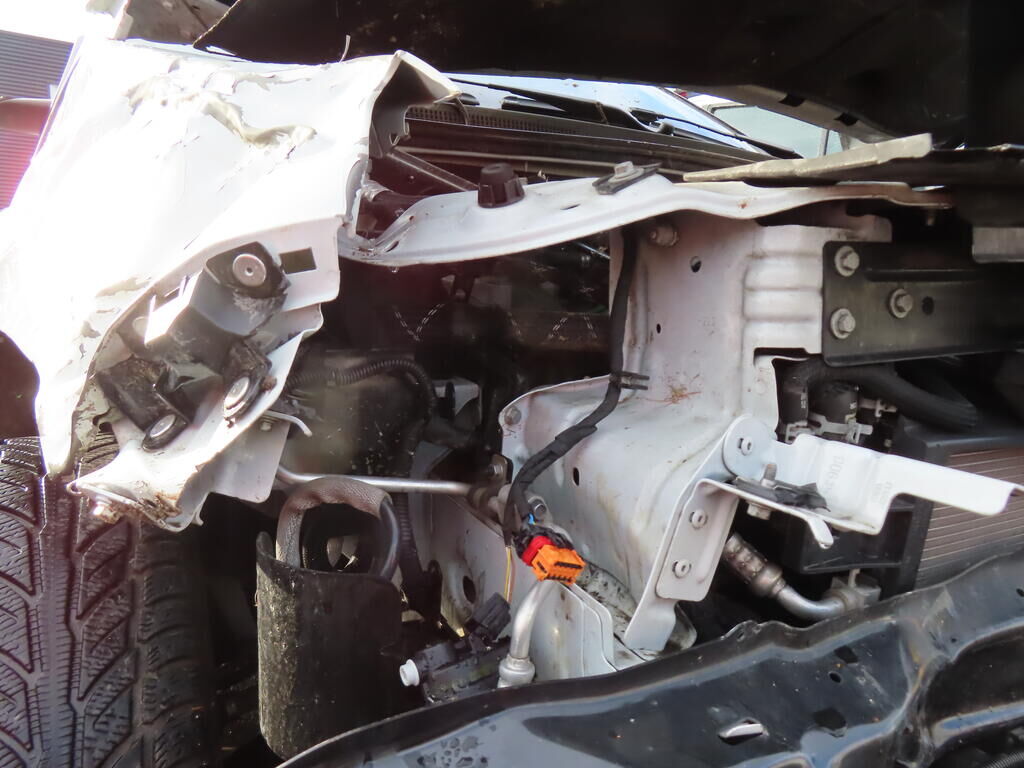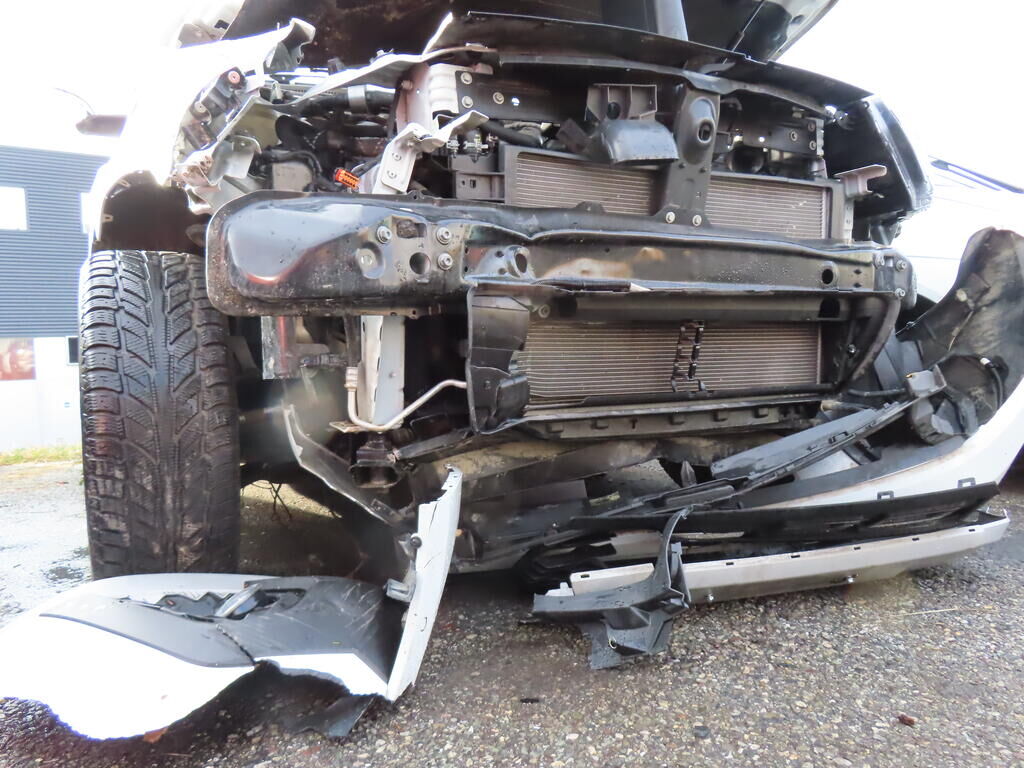 Pare-chocs avant, tôle frontale, passages de roues et longeron avant droit refoulé et enfoncés.