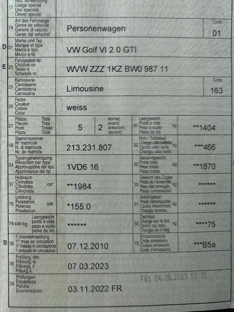 | Prima immatr. | 07.12.2010 |