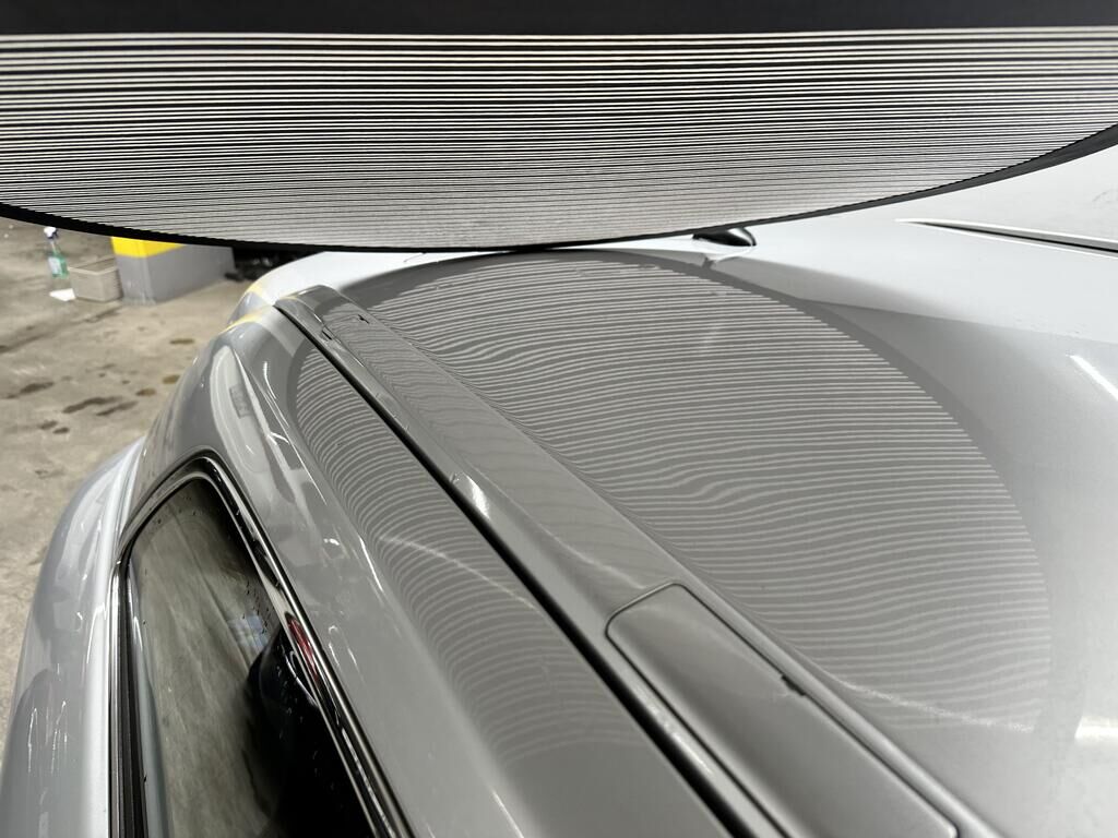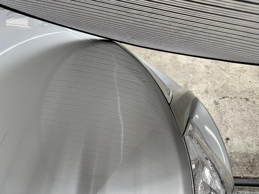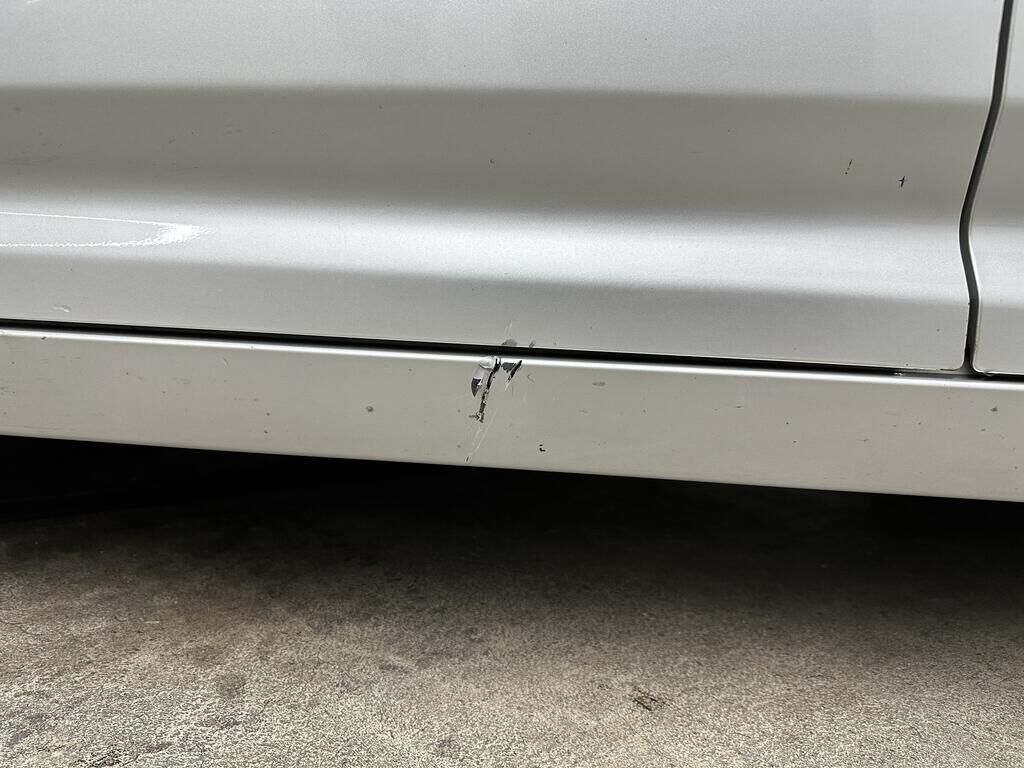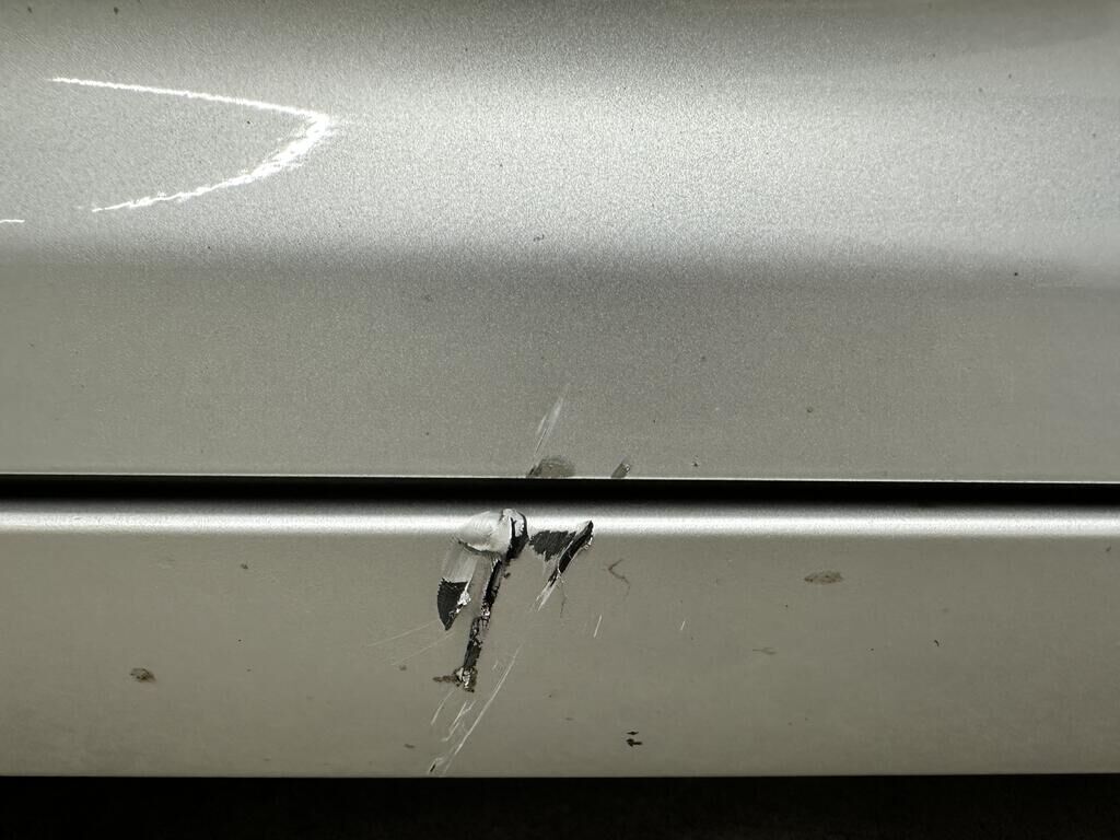 Durch Anprall wurde das Dach, die Türe vorne links und die Schwellenverkleidung links beschädigt.