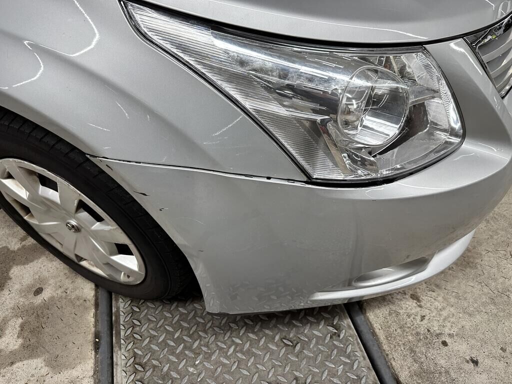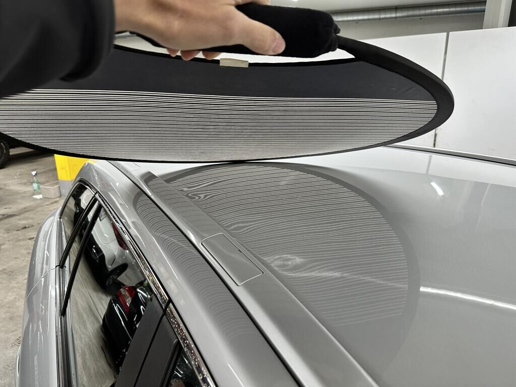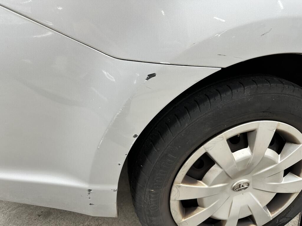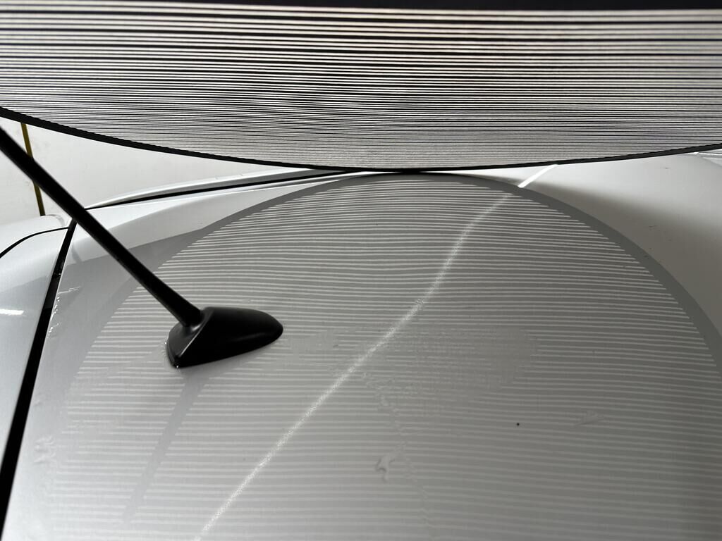 Durch Anprall wurde das Dach, die Türe vorne links und die Schwellenverkleidung links beschädigt.