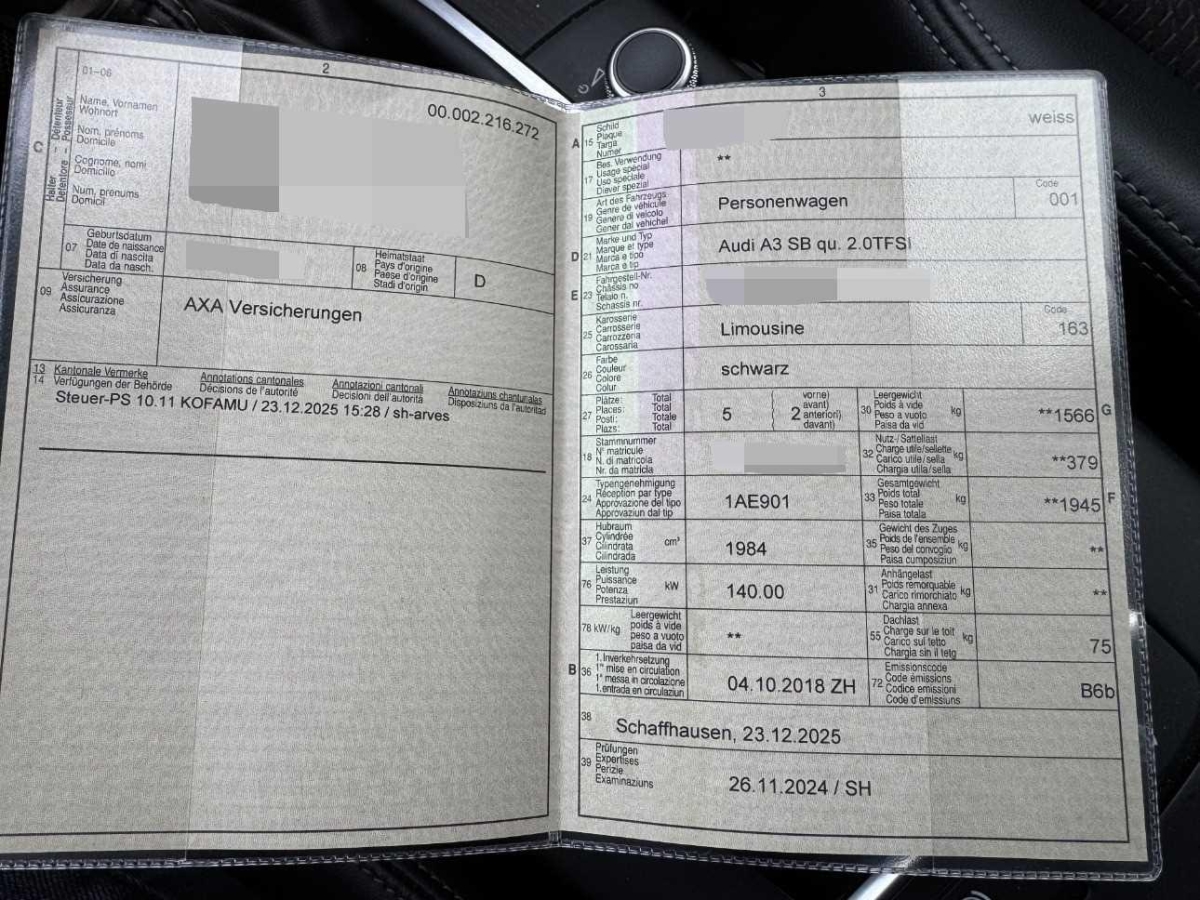 Assistenzpaket Aut. (Assist: Verkehrszeichenerkennung, Adaptive cruise control, Audi pre sense front, Assist: Audi active lane assist, Stauassistent und Notfallassistent, Licht: Fernlicht-Assistent), Komfortschlüssel, advanced key, Assist: Rückfahrkamera, Audi virtual cockpit 12,3”, Scheinwerfer-Waschanlage, Vorrüstung Anhängerkupplung, Assist: Einparkhilfe plus, Assist: Anfahrassistent, Garantie: Audi Garantie: 4 Jahre oder 80’000 km (ab 1. Inv.), Alu-Räder 7,5Jx18 5-Arm-Turbinen-Design, Dachreling eloxiert, Make up-Spiegel beleuchtet für Beifahrer, Aussenspiegel elektrisch einklappbar, Ablagenpaket, Glanzpaket: Fensterschachtleisten in eloxiertem Alu, Einstiegsleisten in Alu, S line Dachkantenspoiler, Tempomat, Audi Smartphone Interface, S-Line Sportfahrwerk, Sitze: Vordersitze heizbar, Klimaautomatik Komfort, Assistenzpaket inklusive Stau-und Notfallassistent und Side Assist, S line Exterieurpaket, Kreuzstützen für Vordersitze verstellbar, Mittelarmlehne vorne, Multifunktions-Sportlenkrad in Leder, unten abgeflacht Tiptronic, mit Schaltwippen, S line Sportpaket
