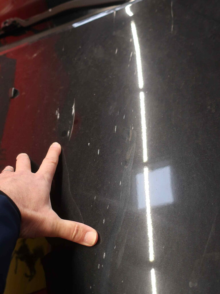Stosstange vorne komplett, Pralldämpfer und Luftführung vorne unten, Kotflügel vorne links, Scheinwerfer vorne links, Motorhaube, Kühlergrill, Rückspiegel links komplett, Frontscheibe, Felge vorne links (nicht original), Risiko Radaufhängung vorne links nicht einkalkuliert.