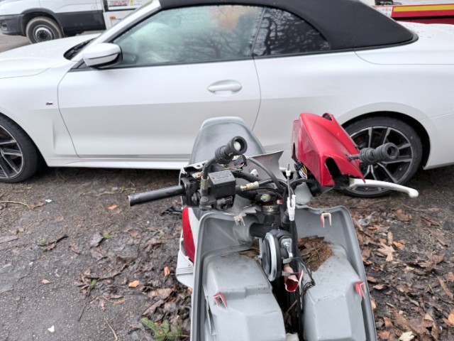 Beschädigungen Links Linke Seite beschädigt. Ist auf die linke Seite gefallen. Verschalung oben links gebrochen. Verschalung unten links gebrochen. Verschalung hinten links gebrochen. Rechts Front Heck Rahmen Motor Elektrik Sonstige Schäden Weitere Beschädigungen |