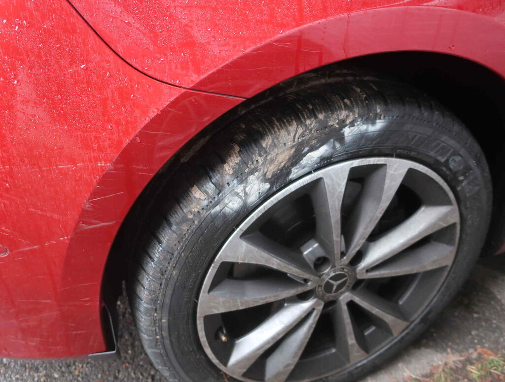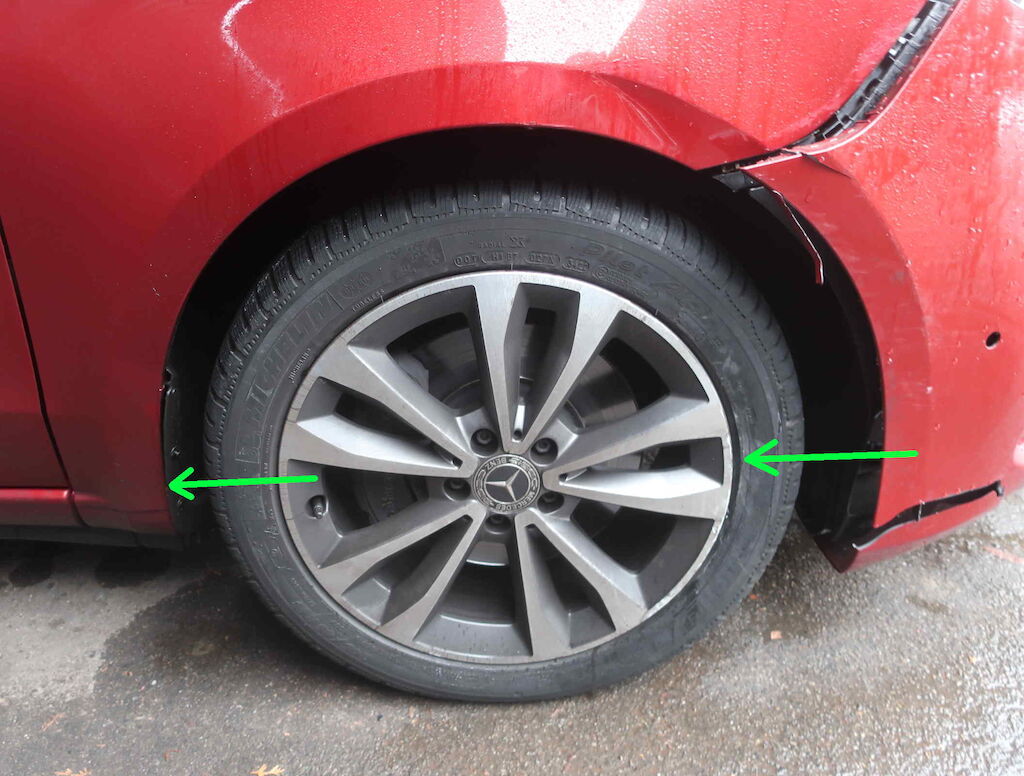 Fahrwerk: Aufhängung vo re, deformiert, Felge und Reifen