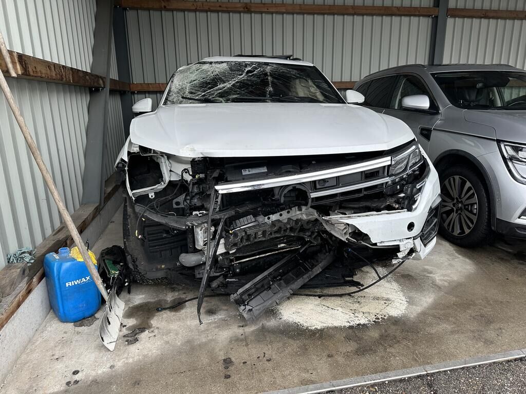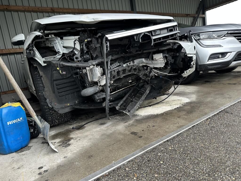 Frontschaden VR mit Beschädigung von Kotflügel, Motorhaube. Dach, Kühler, Aufhängung Unterboden Etc…