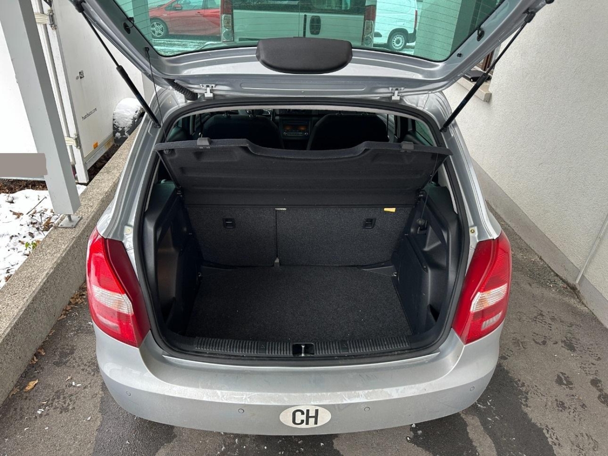 Gurtwarneinrichtung für Fahrersitz, 4 Leichtmetallfelgen 15J mit Pneu, Antriebsschlupfregelung (ASR), Laderaumbeleuchtung, Tagfahrlicht, Bordcomputer, Media: 8 Lautsprecher, Aussentemperaturanzeige, Lichtwarnsummer, Stossstangen und Aussenspiegel in Wagenfarbe, Befestigungsösen im Laderaum, Airbag: Airbag Beifahrer deaktivierbar, Polster: Stoff-Ausstattung, Lenkrad längs- und höhenverstellbar, Gurtstraffer vorne, Airbag: Airbag Fahrer und Beifahrer, Start-/Stopp-Automatik, Räder: Pannenset, Lackierung: Uni-Lackierung, Airbag: Seitenairbags, Seitenschutz-Zierleisten, Laderaumabdeckung, Katalysator geregelt, Elektronisches Stabilitäts-Programm (ESP), Audio-Anschluss in der Mittelkonsole, Radiovorbereitung, Antenne, Entstörung und 4 LS, Ablagen in den Türen, Ablagefach unter dem Fahrersitz, Beifahrersitz höhenverstellbar, Bottleholder, Komfortblinker, Dunkel getönte Scheiben (SunSet), Getriebe: Sequentielles 7-Gang-Getriebe mit Automatikfunktion, Make up-Spiegel links, ISOFIX Kindersitzvorrichtung, Digital Uhr, Klima: Klimaanlage, Drehzahlmesser, Leseleuchten, Wärmeschutzverglasung, Nichtraucherausführung, Servolenkung, Ablagefach im Kofferraum, Wegfahrsperre elektronisch, Pollenfilter (Staubfilter), Elektrische Fensterheber vorne, Licht: Nebelscheinwerfer, Teppichfussmatten vorne und hinten, Zentralverriegelung mit Fernbedienung, Radio SWING mit CD-Player, MP3, Tageskilometerzähler, Heckscheiben-Wisch-/Waschanlage, Sitze: Rücksitzlehne geteilt abklappbar, Sitze: 3 Kopfstützen hinten, Antiblockiersystem (ABS), 3-Punkt-Sicherheitsgurte auf allen Plätzen, Türgriffe aussen in Wagenfarbe, Make up-Spiegel rechts, Wassertemperaturanzeige, Sitze: Fahrersitz höhenverstellbar
