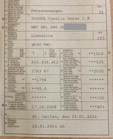 Toyota Corolla Verso 1.8 VVT-i Editio Kombi 207’600 km – SCC