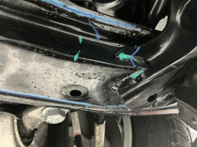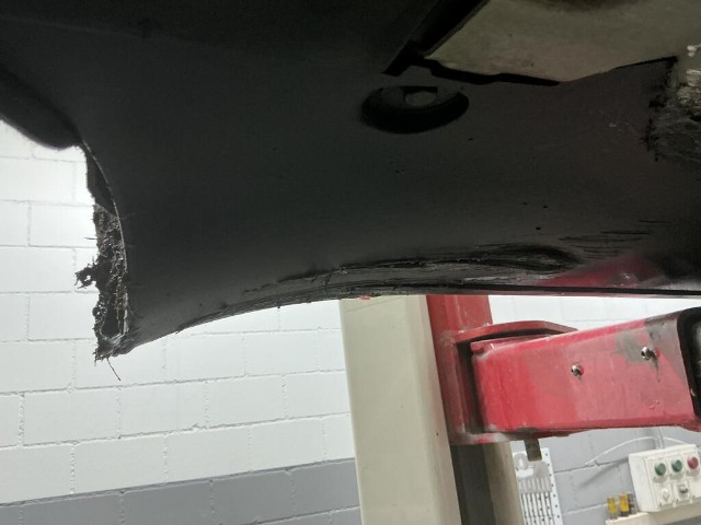 Hinterachse ist beschädigt.