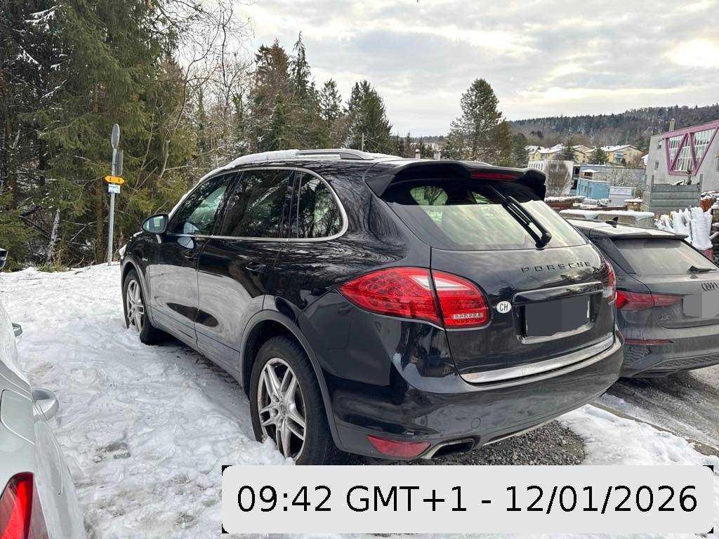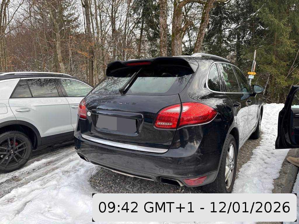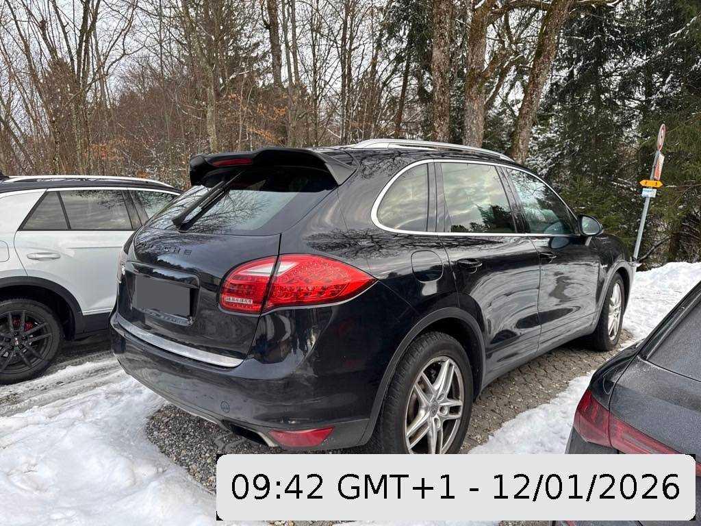 Vorbereitung für Anhängevorrichtung, Fahrstabilisierungssystem Porsche – Stability-Management (PSM), Nichtraucherausführung, Wartungsintervall-Anzeige, Wegfahrsperre elektronisch, Höhenverstellbare Gurten vorne, Metallapplikationen, Assist: Seitenaufprall-Schutzsystem, Assist: Tempomat, Fussraumbeleuchtung vorne und hinten, Sitze: Komfortsitze vorne elektr. verstellbar, ISOFIX Kindersitzvorrichtung, Lenkrad: Lenkrad längs- und höhenverstellbar, Mittelkonsole mit Ablagefach, 4 Leichtmetallräder Cayenne S Rad 18J, Digital Uhr, Dachspoiler, Aussenspiegel rechts und links beheizt, elektrisch verstell- / und einklappbar, 3 Kopfstützen hinten, Reduktionsgetriebe, Licht: Fahrlichtassistent (automatisches Fahrlicht), 3-Punkt-Sicherheitsgurte auf allen Plätzen, Licht: LED Blink- und Positionsleuchten, Kofferraum-Entriegelung von innen, Assist: Porsche Traction Management (PTM), Scheibenwischer vorne mit Intervall, Licht: LED Heckleuchten, Tageskilometerzähler, Sitze: Rücksitzlehne geteilt abklappbar, Zweiklanghorn, Zentralverriegelung mit Fernbedienung, Audiosystem CDR-31, Klimatisierungsautomatik, Aussentemperaturanzeige, Ausstiegsleuchten in den Türen, Bremsbelag-Verschleissanzeige, Katalysator geregelt, Ablagefach in Armlehne hinten, Drehzahlmesser, Heckscheiben-Wisch-/Waschanlage, Allradantrieb permanent, Räder: Reifenreparatur-Set mit Kompressor, Elektronische Parkbremse, Leseleuchten vorne, Steckdose, Auspuffanlage mit 2 Endrohren (links und rechts), Airbag: Airbag Beifahrer deaktivierbar, Servotronic, Aktivkohlefilter, Diebstahlwarnanlage mit Innenraumüberwachung, Airbag: Window-Kopfairbags, Gurtwarneinrichtung für Fahrer- und Beifahrersitz, Licht: Nebelschlussleuchte, Polster: Leder-Ausstattung, Lackierung: Uni-Lackierung, Gurtstraffer vorne und hinten, Vordersitze höhenverstellbar, Getriebe: 8-Stufen-Automat sequentiell, Bremsassistent (BAS), Getönte Scheiben, Elektrische Fensterheber vorne + hinten, Leseleuchten hinten, Antiblockiersystem (ABS), Tankdeckel-Entriegelung von innen, Multifunktionsanzeige, Antriebsschlupfregelung (ASR), Bremssättel dunkelgrau lackiert, Heckscheibenheizung, Airbag: Seitenairbag für Fahrer und Beifahrer, Bordcomputer, Airbag: Airbag Fahrer und Beifahrer, Laderaumabdeckung, Einstiegsschienen vorne, Automatikgurt in Fondmitte, Armauflage Mittelkonsole vorn mit integriertem Ablagefach, Adaptives Bremslicht, Türgriffe aussen in Wagenfarbe, Steckdose 12V, Innenlicht-Abschaltverzögerung