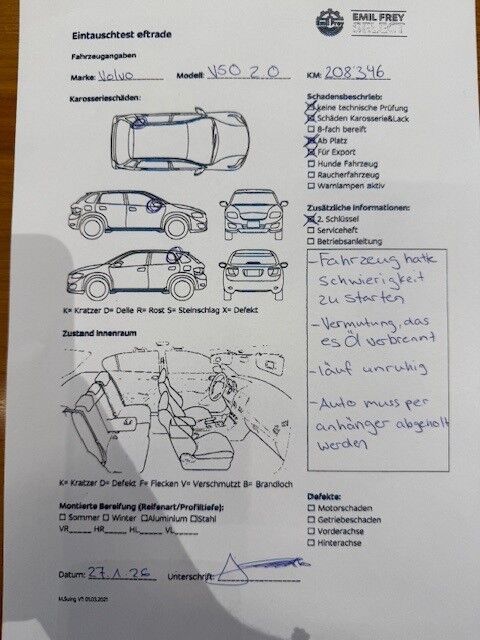 | Fahr-zeug hatte Schwierigkeiten zu starten Vermutung ist das er Öl verbrennt läuft unruhig Auto muss per Anhänger abgeholt werden. |