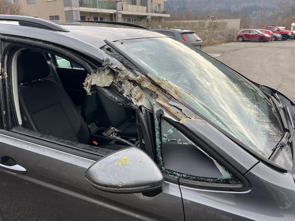 Dabei wurde die Frontscheibe, die A-Säule, die B-Säule, die C-Säule, die D-Säule, die Türen und diverse Anbauteile beschädigt.