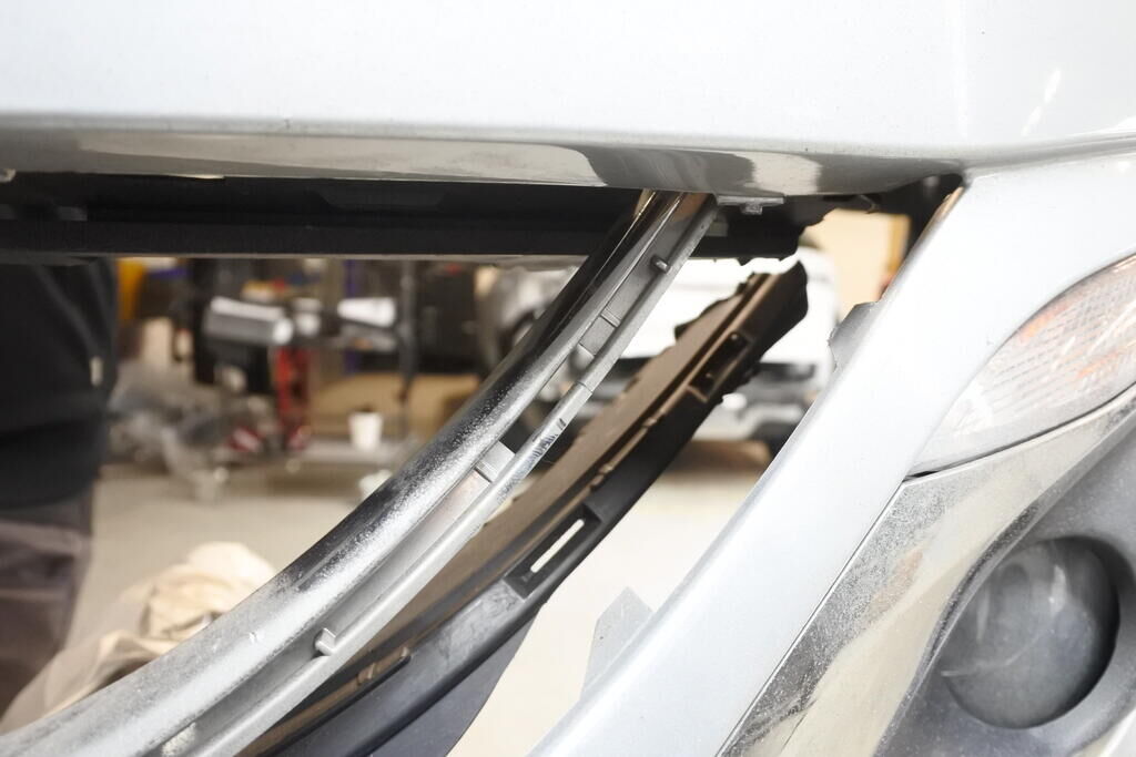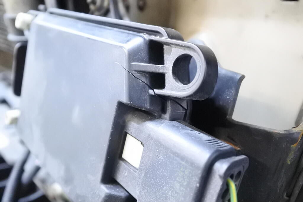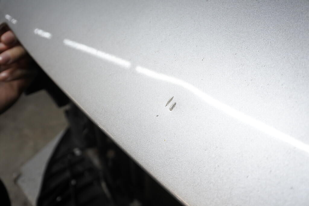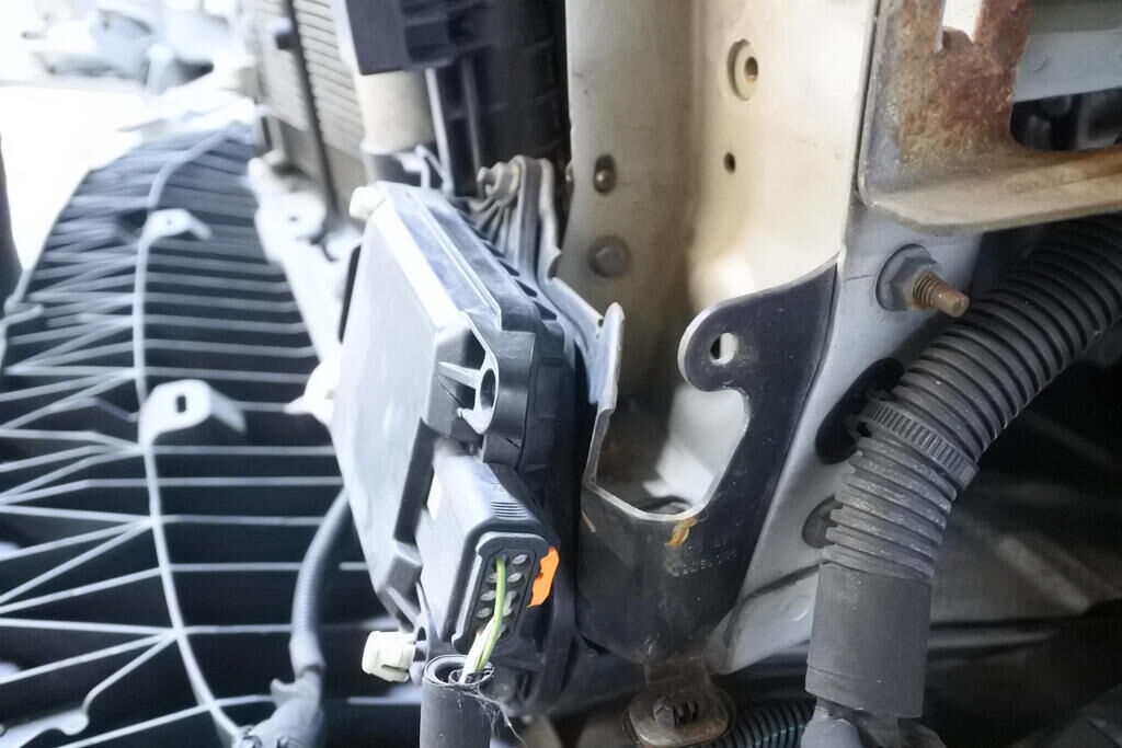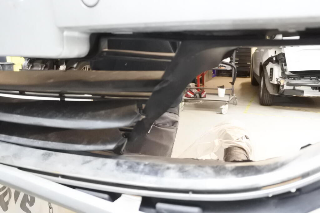 Die Stossstange mit Anbauteilen, die Kühlanlage, der Radar sowie die Frontstrebe sind eingedrückt und beschädigt.