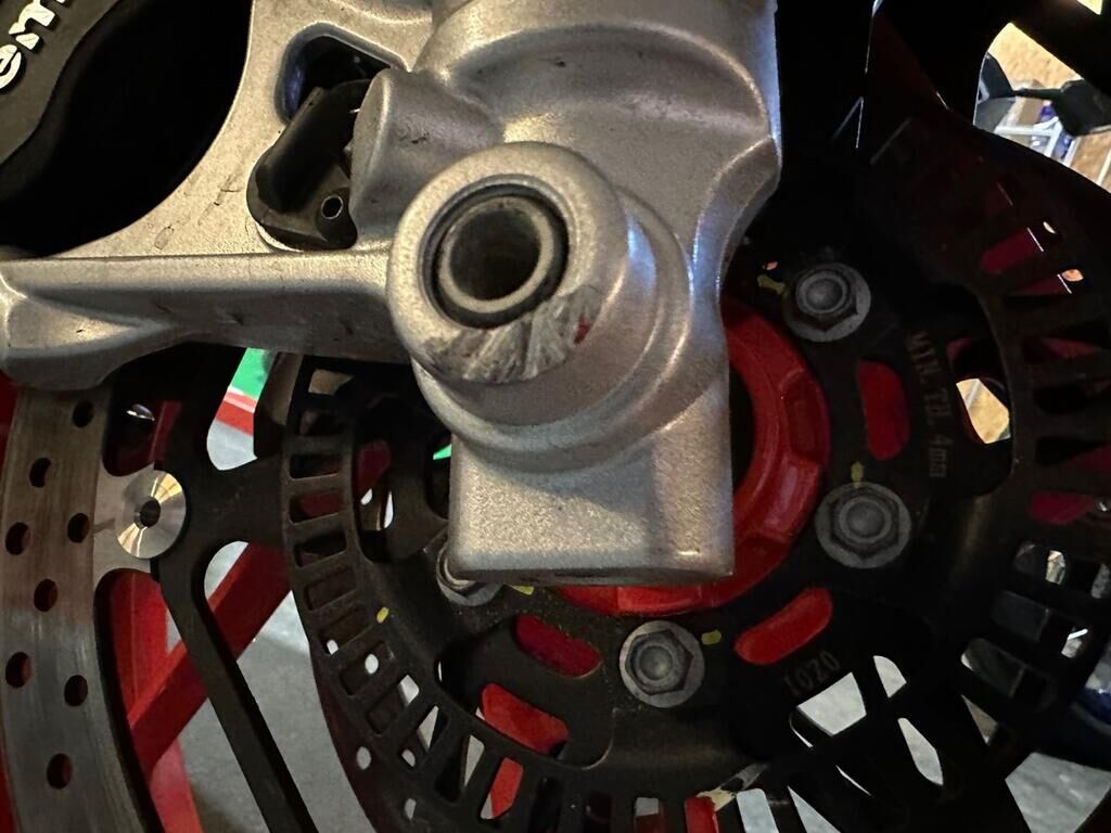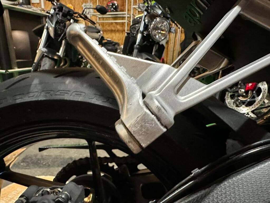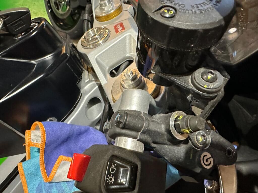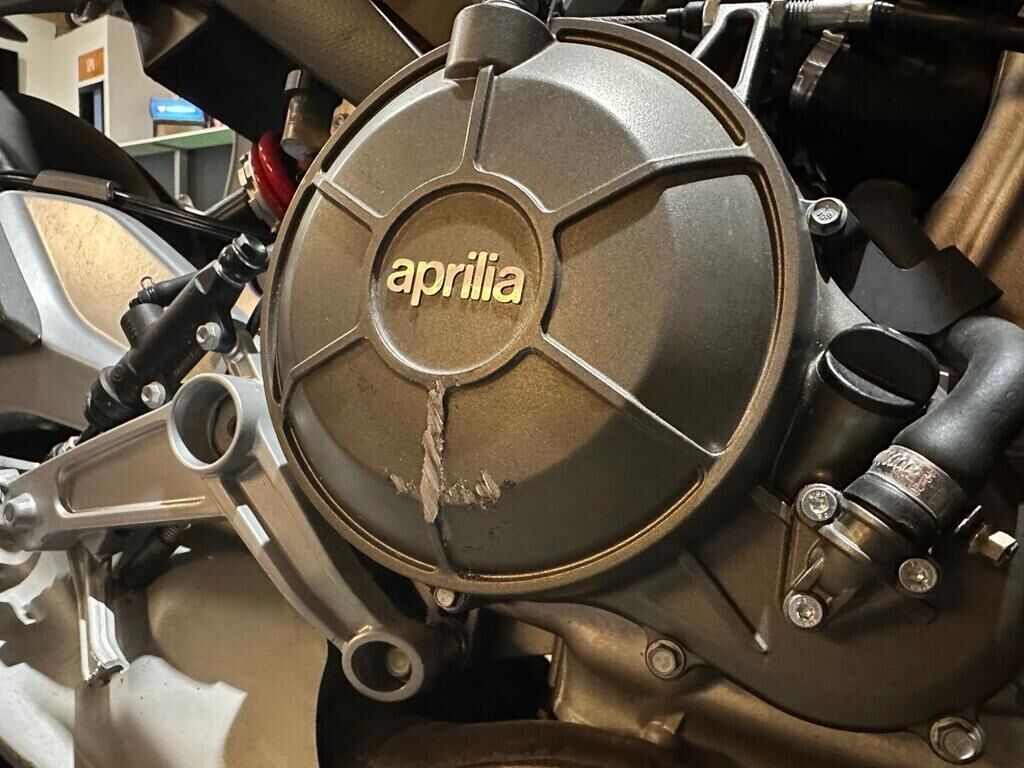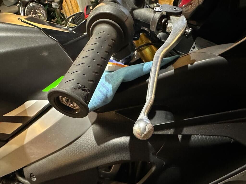 Deformation der Gabel, Lenker, Bremshebel, Tank, Verkleidungen, Motordeckel, Fusshebel, Fussraste, Hitzeschutz und der Schwinge hinten.