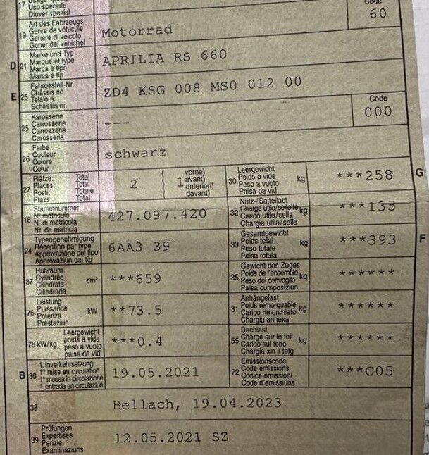 | Tipo veicolo / Costruzione / Porte | Motoveicolo / Motoveicolo / 0 |