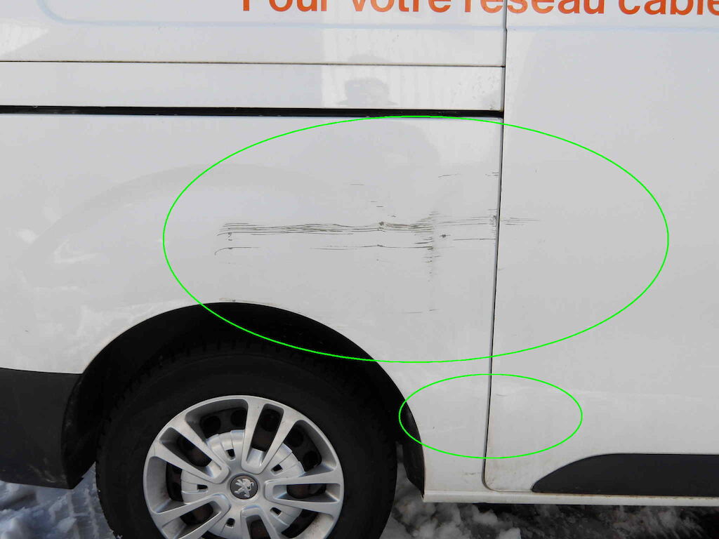Aile, porte, pare-chocs av et arr, capot, phare, protection moteur, jupe, rétroviseur, suspension, direction, pneu et jante avant gauche et bas de caisse avant gauche endommagés