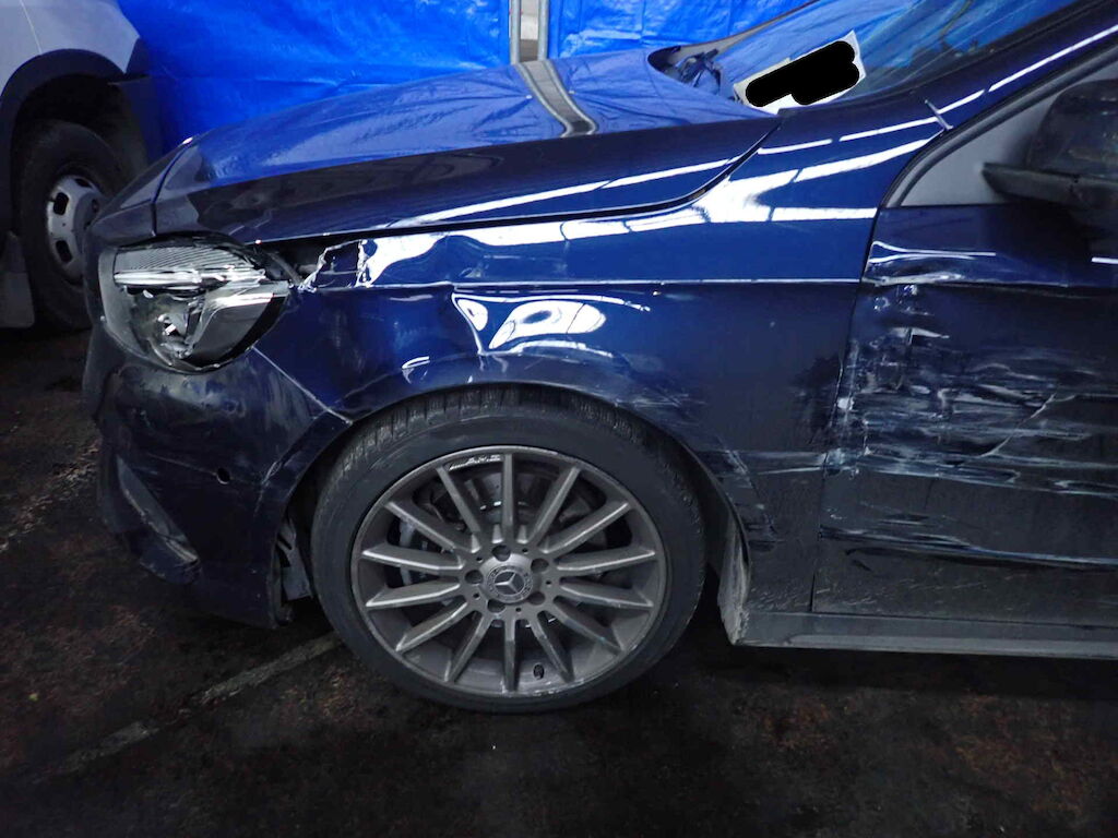 Durch den Anprall wurde die gesamte linke Seite sowie die Ecke hR beschädigt. Gemäss Halter ist nur ein Schlüssel vorhanden