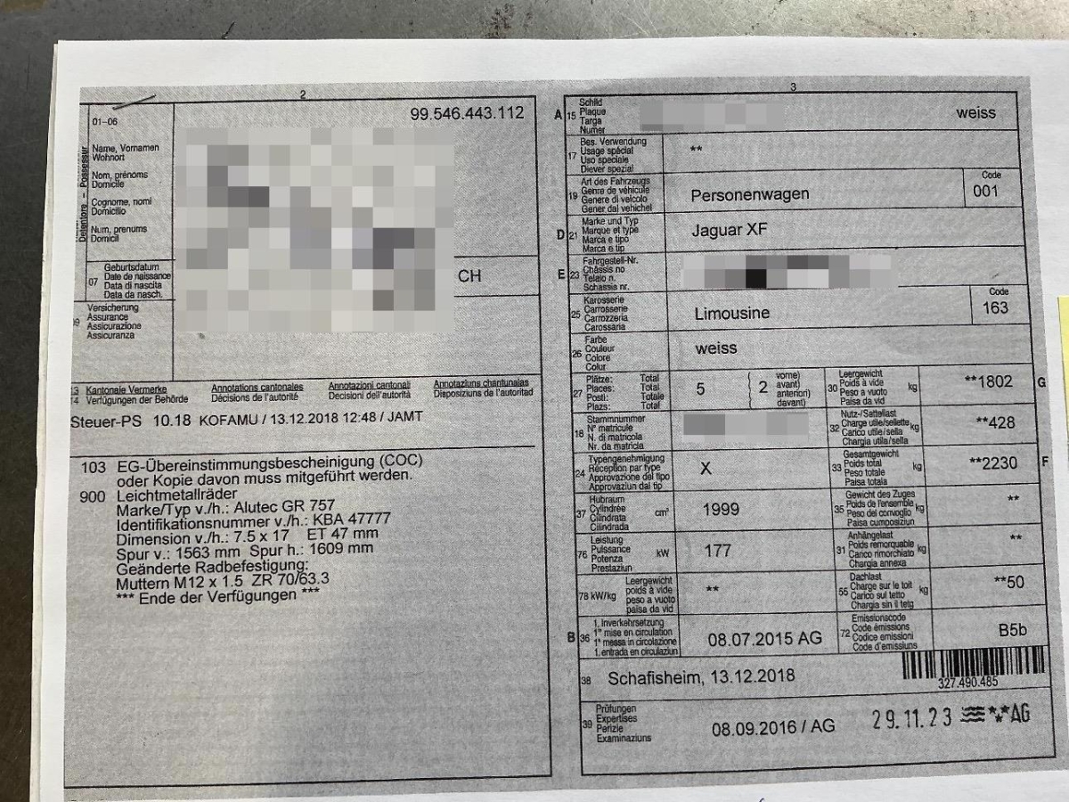 Fahrzeugausweis Vorhanden