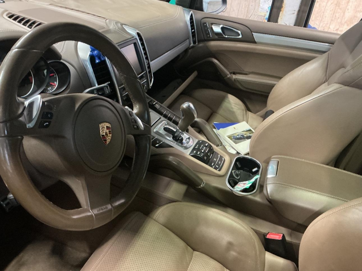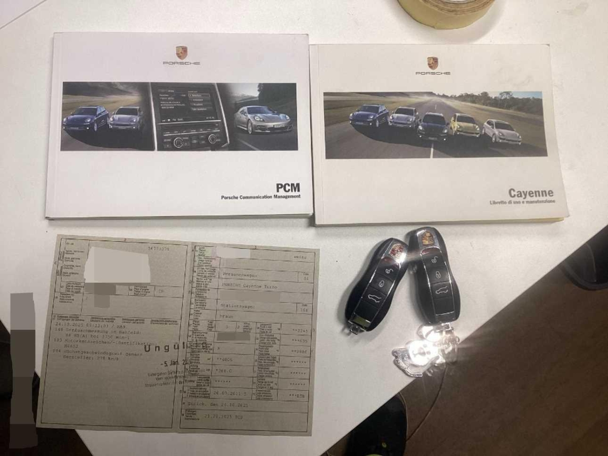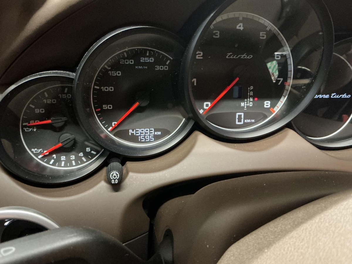 Fussraumbeleuchtung vorne und hinten, Dachhimmel in Alcantara, 4 Leichtmetallräder Cayenne Turbo Rad 19J, Elektrische Fensterheber vorne + hinten, Heckscheibenheizung, Sitze: Rücksitzlehne geteilt abklappbar, Vorbereitung für Anhängevorrichtung, Ausstiegsleuchten in den Türen, Bi-Xenon-Scheinwerfer inkl. Reinigungsanlage, schwarz, 3 Kopfstützen hinten, Räder: Reifenreparatur-Set mit Kompressor, Steckdose, Airbag: Window-Kopfairbags, Automatikgurt in Fondmitte, Tankdeckel-Entriegelung von innen, Aussenspiegel rechts und links beheizt, elektrisch verstell- / und einklappbar, Reduktionsgetriebe, Kofferraum-Entriegelung von innen, Innenlicht-Abschaltverzögerung, ISOFIX Kindersitzvorrichtung, Sitze: Sitzheizung vorne und hinten, Lenkradheizung, Licht: Nebelschlussleuchte, Elektronische Parkbremse, Zweiklanghorn, Tageskilometerzähler, Servolenkung, Digital Uhr, Antiblockiersystem (ABS), Vordersitze höhenverstellbar, Licht: Fahrlichtassistent (automatisches Fahrlicht), Porsche Active Suspension Management (PASM): Luftfederung inkl. Niveau- regulierung, Assist: Tempomat, Innenspiegel und Aussenspiegel links automatisch abblendend, Gurtwarneinrichtung für Fahrer- und Beifahrersitz, Höhenverstellbare Gurten vorne, Lederausstattung Glattleder einfarbig, Gurtstraffer vorne und hinten, Getriebe: 8-Stufen-Automat sequentiell, Heckscheiben-Wisch-/Waschanlage, Türgriffe aussen in Wagenfarbe, Oeldruckanzeige, Wegfahrsperre elektronisch, Aluminium-Paket, Dachspoiler, Lackierung: Metallic-Lackierung, Räder: Reifendruckkontrollsystem ( RDK ), Adaptives Bremslicht, Wartungsintervall-Anzeige, Leseleuchten hinten, Mittelkonsole mit Ablagefach, Klimatisierungsautomatik, Bremsassistent (BAS), Assist: Seitenaufprall-Schutzsystem, Licht: LED Heckleuchten, Steckdose 12V, Bordcomputer, 6-Kolben-Aluminium-Monobloc-Festsattelbremsen vorne, Scheibenwischer vorne mit Intervall, Antriebsschlupfregelung (ASR), Park Distance Control vorne und hinten, Sitze: Komfortsitze vorne elektr. verstellbar, Ablagefach in Armlehne hinten, 3-Punkt-Sicherheitsgurte auf allen Plätzen, Einstiegsschienen vorne, Allradantrieb permanent, Laderaumabdeckung, Sportauspuffanlage, Bremsbelag-Verschleissanzeige, Armauflage Mittelkonsole vorn mit integriertem Ablagefach, Diebstahlwarnanlage mit Innenraumüberwachung, Multifunktionsanzeige, Auspuffanlage mit 2 Endrohren (links und rechts), Katalysator geregelt, Leseleuchten vorne, Aussentemperaturanzeige, Zentralverriegelung mit Fernbedienung, Fahrstabilisierungssystem Porsche – Stability-Management (PSM), Airbag: Airbag Beifahrer deaktivierbar, Metallapplikationen, Kraftstofftank 100 Liter, Getönte Scheiben, Assist: Porsche Traction Management (PTM), Media: Bose Surround Soundsystem, Adaptive Sportsitze inkl. Komfort- Memory-Paket, Airbag: Airbag Fahrer und Beifahrer, Airbag: Seitenairbag für Fahrer und Beifahrer, Porsche Communication Management (PCM) – inklusiv erweitertem Navigationsmodul, Licht: LED Blink- und Positionsleuchten, Drehzahlmesser, Aktivkohlefilter
