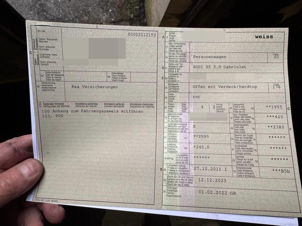| Fahrzeugausweis | Vorhanden |