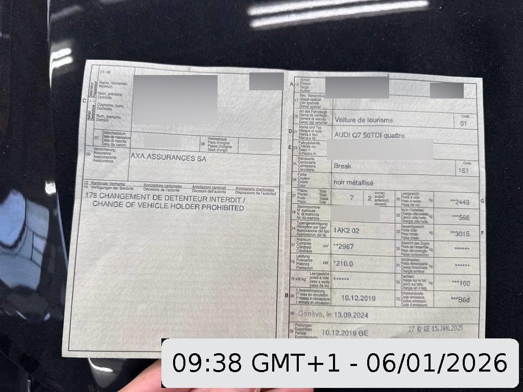 Assistenzpaket Tour (Assist: Ausweichassistent, Assist: Adaptiver Tempomat ACC, Assist: Effizienzassistent, Turn Assistant (Abbiegeassistent), Assist: Adaptiver Fahrassistent + Notfallassistent + Spurwechselwarnung), Paket Technik (Bang & Olufsen Soundsystem, Elektrisch verstellbares Lenkrad, Hinterachslenkung, 4-Zonen-Klimatisierungsautomatik, Adaptive air suspension: elektronisch geregelte Luftfederung inkl. Niveau- regulierung), Assistenzpaket Stadt (Assist: Spurwechselwarnung, Audi pre sense rear, Assist: Kreuzungsassistent, Assist: Ausstiegswarnung, Assist: Querverkehrsassistent hinten), Mittelarmlehne vorne mit Ablagefach, Leichtmetallräder Audi Sport im 5-Arm-Edge-Design 22J, Vordersitze elektrisch verstellbar mit Memory, Schliesshilfe für Türen, Sonnenschutzrollos für Heckscheibe und hintere Türscheiben, Dachhimmel schwarz, Garantie: Audi Garantie: 4 Jahre oder 80’000 km (ab 1. Inv.), 3. Sitzreihe mit 2 Sitzen, Getönte Scheiben Privacy, Dachreling schwarz, Bose Premium Soundsystem mit 3D Klang, Sitze: Vordersitze heizbar, Metallic-Lackierung, Licht: Einstiegs LED mit Projektion, Head-Up Display, Media: DVD-Player, Audi virtual cockpit plus, Paket: Optikpaket schwarz, Aussenspiegel elektrisch verstellbar mit Memory, elektrisch anklappbar, automatisch abblendend, Panorama-Glasdach, Media: Audi Phone Box
