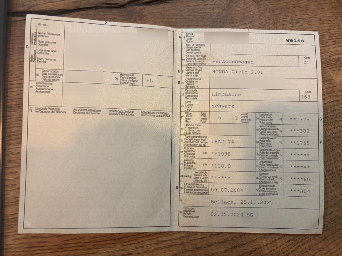 | Fahrzeugausweis | Vorhanden |