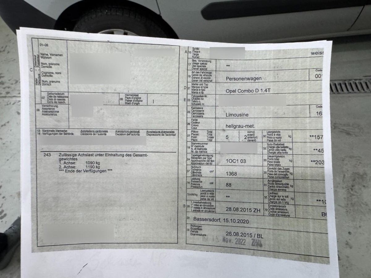 | Fahrzeugausweis | Vorhanden |