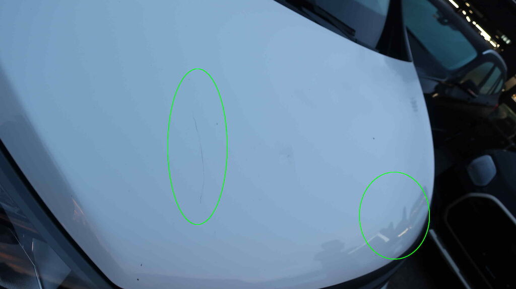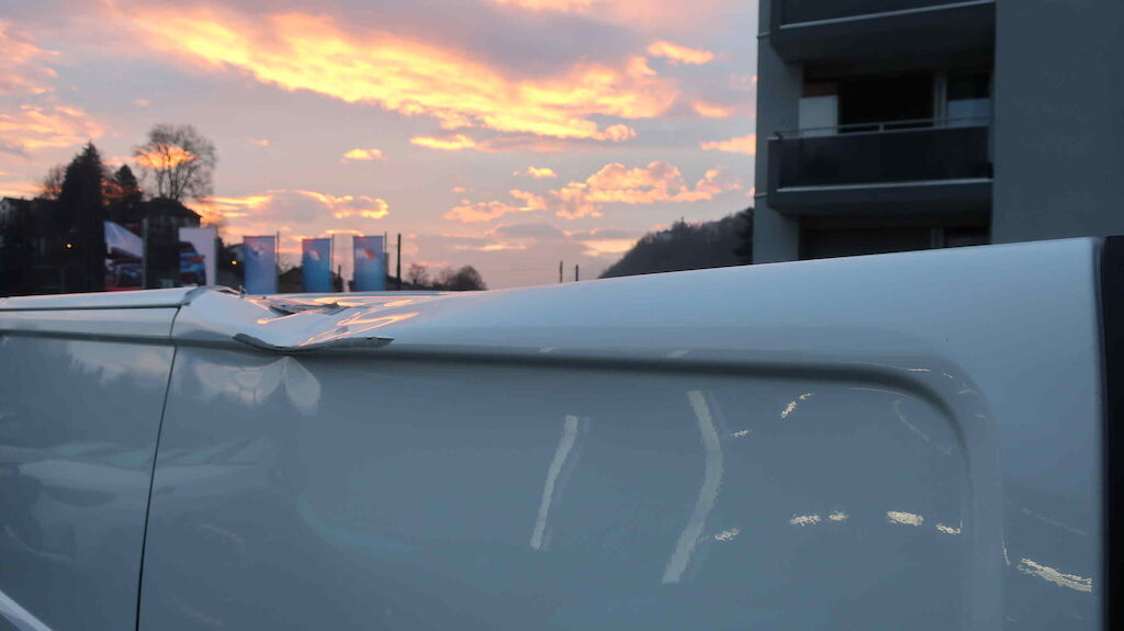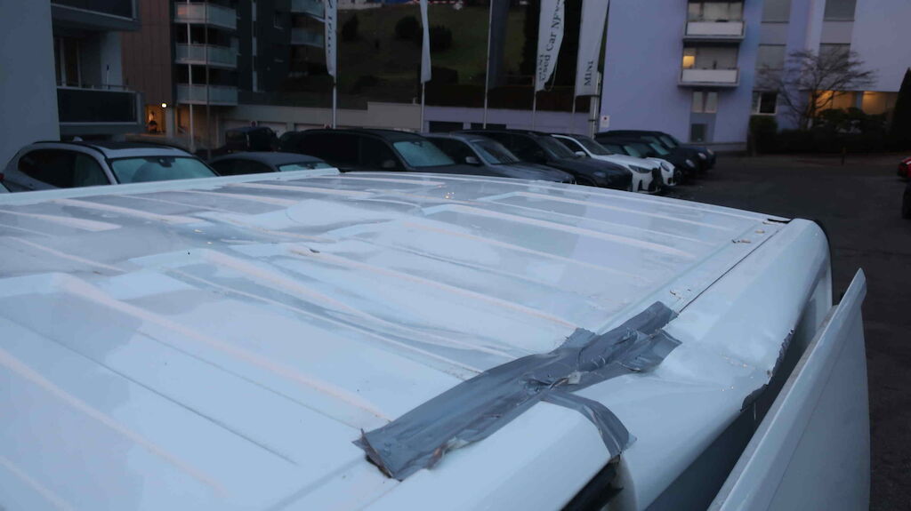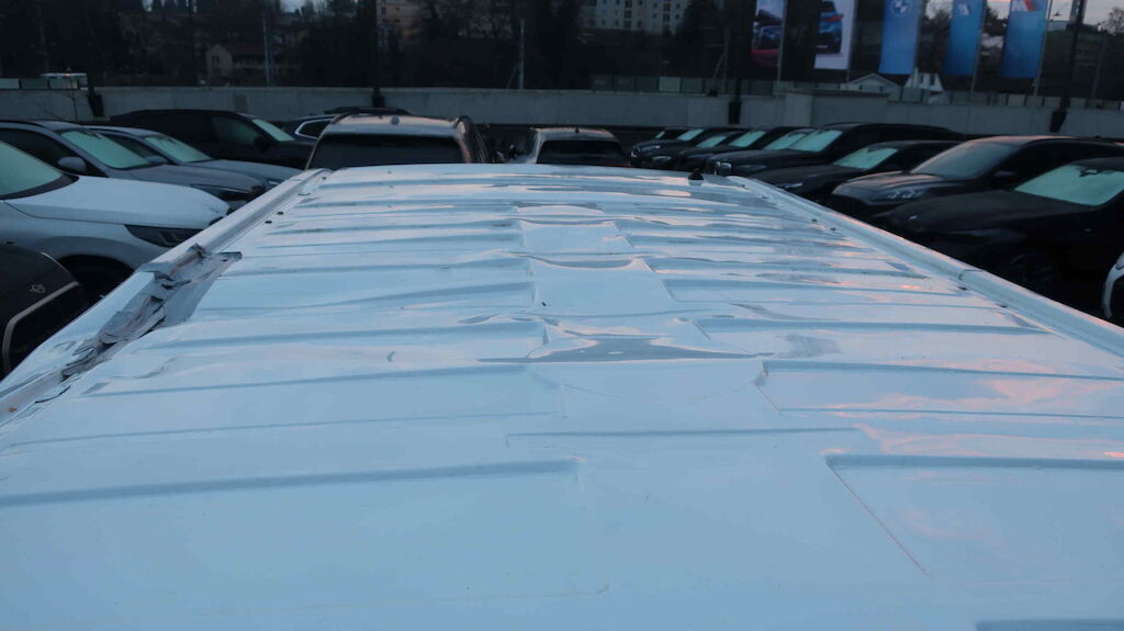 Dach grossflächig deformiert, Delle Motorhaube, Seitenwand links deformiert