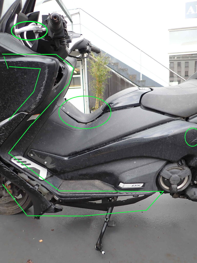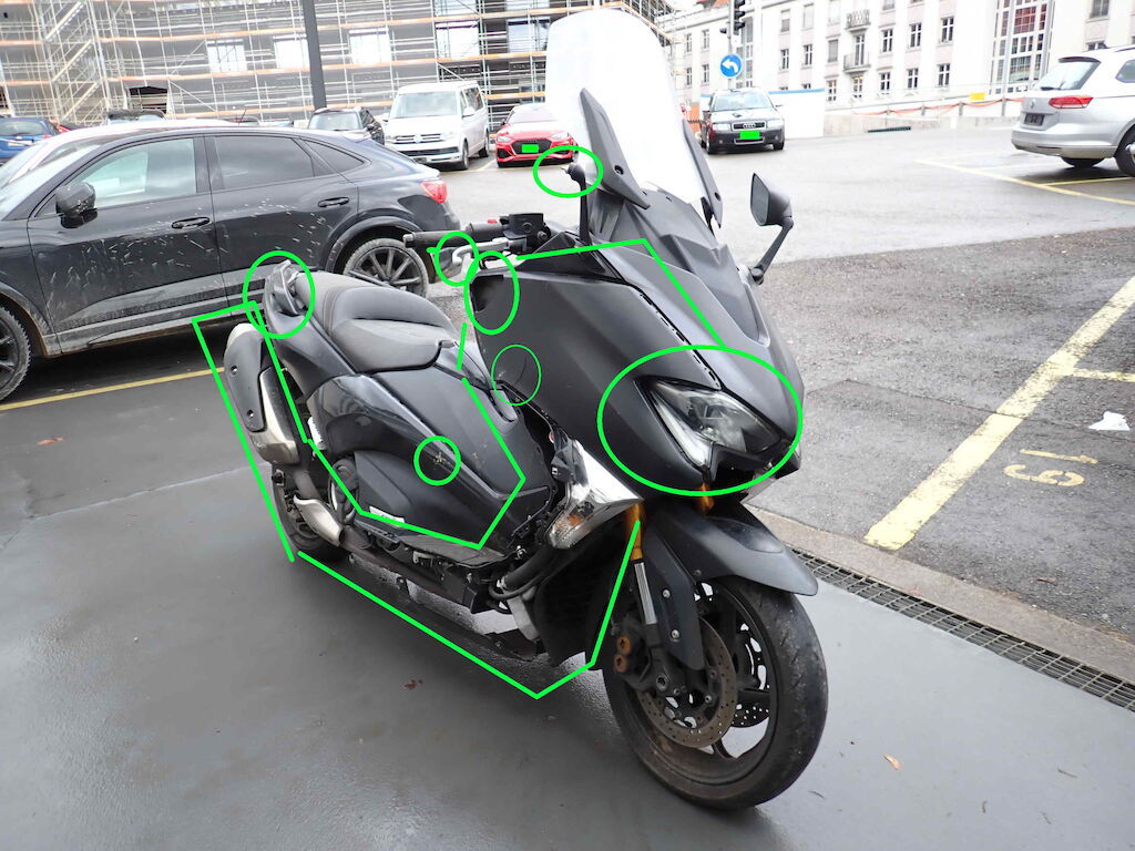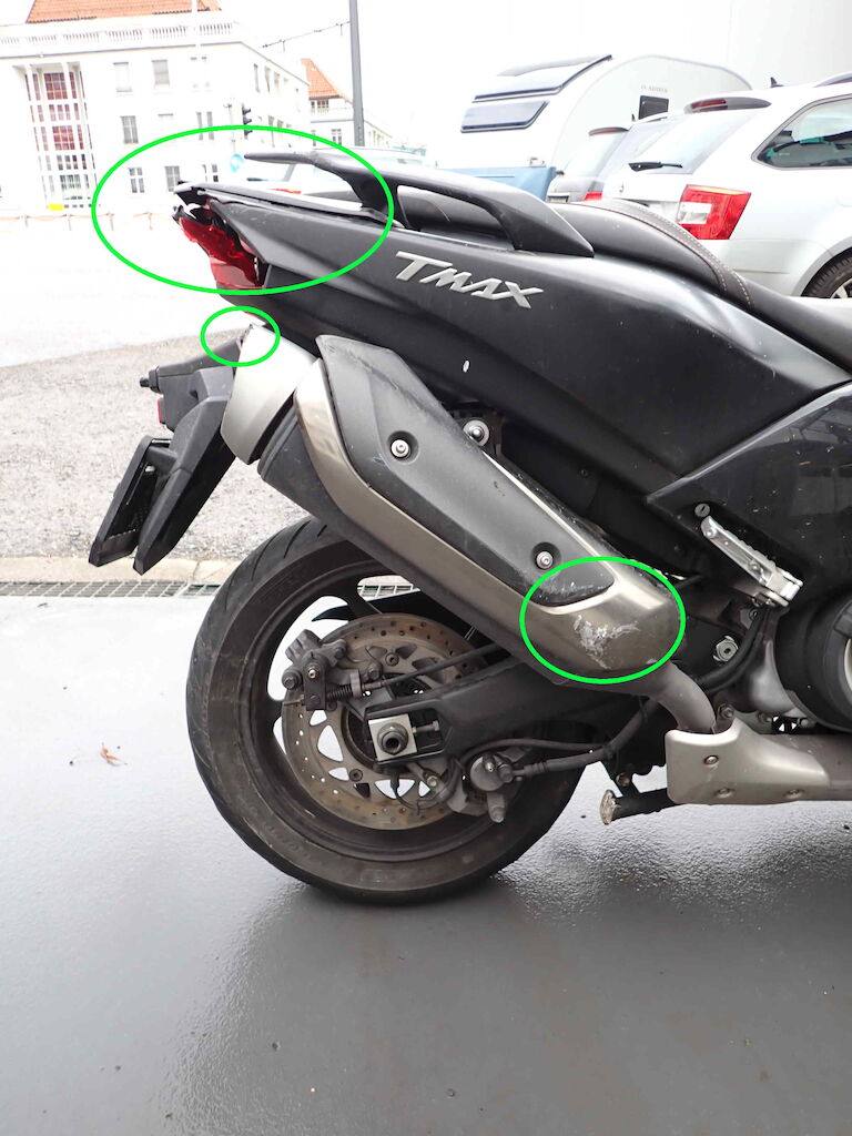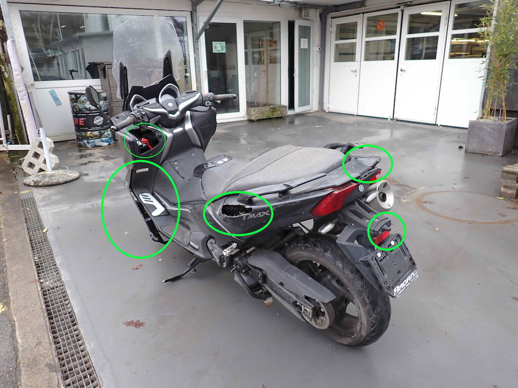 Wieder aufgefundenes Diebstahlfahrzeug. Anzahl Schlüssel: 1x FB / Fz-Ausweis: vorhanden / Bordmappe+Serviceheft: fehlen / Km-Stand: original / VIN: original / Lenk-Zündschloss: beschädigt (Risiko) / Reifen: Vo: 120/70-15 (0%), Hi: 160/60-15 (0%). Schäden: ganze rechte Seite inkl. Rückspiegel, Rückleuchte, Griffe, Auspuff // Scheinwerferhalterung gebrochen // auch linke Seite stark beschädigt // Wegfahrsperre aktiv, Motor startet nicht // Batterie defekt // Service inkl. Bremsen fällig // Sattelbezug leicht beschädigt // RISIKO auf alles. Probefahrt: nicht möglich. Die hier gemachten Angaben sind unverbindliche Beschreibungen. Sie stellen keine zugesicherten Eigenschaften dar. Der Verkäufer haftet nicht für Irrtümer, Eingabefehler und Datenübermittlungsfehler.