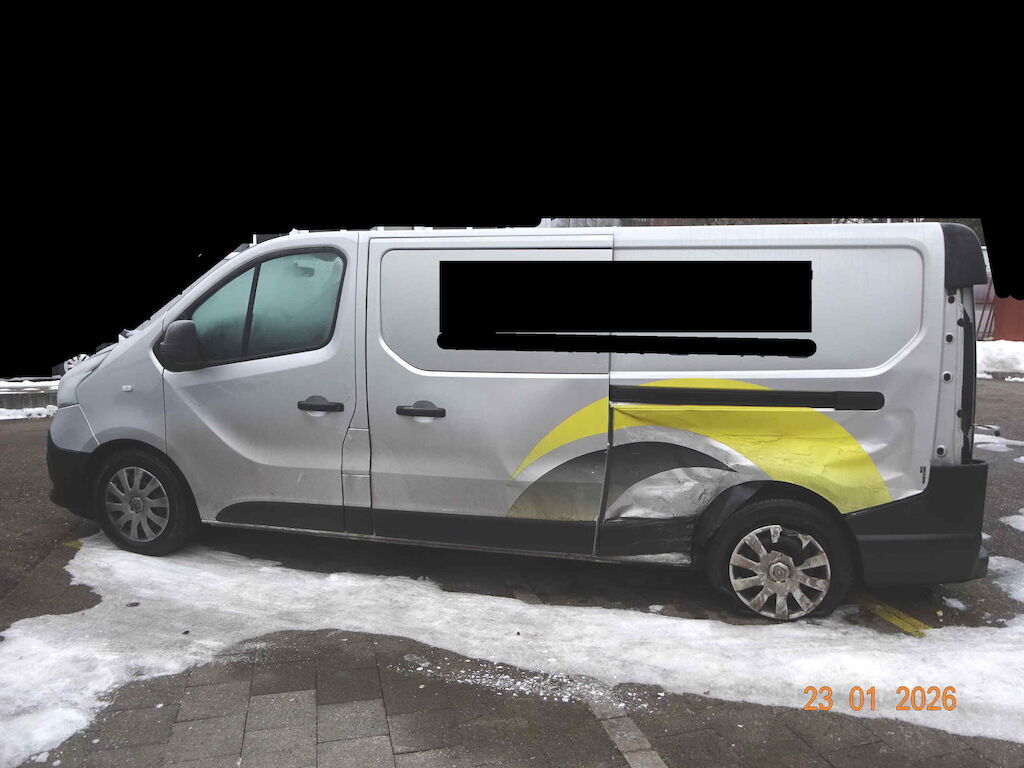 Massiver Seitlicher Aufprall –> Chassis verzug / Hinterachse ausgerissen Li. / Seitenwand + Schweller Li. tief deformiert / Längsträger H.L. deformiert / Risiko Unterboden hi. / Schiebetür Li. deformiert / alle Gurtstraffer ausgelöst / Motorschutz Aktiv, Motor läuft nicht an / Fz. ist nicht Rollbar / innenausbau Gestell wird ausgeräumt und Leer mitgegeben.