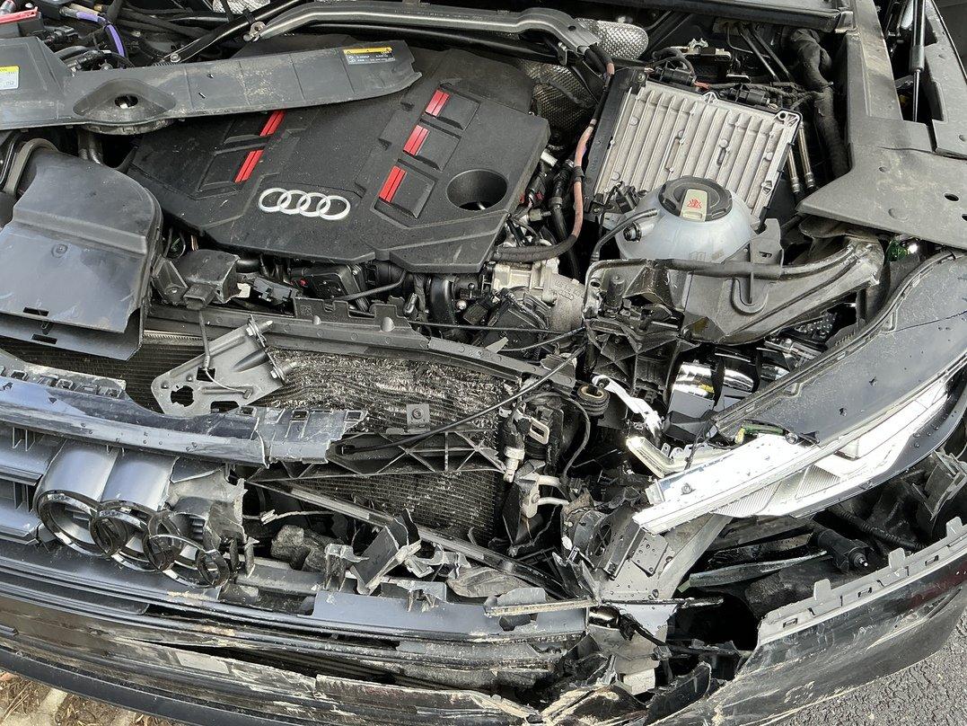 Schadensbeschreibung Choc avantBloc avant enfoncéCapot moteur enfoncéProtections piétons enfoncéesTôle avant enfoncéeLongeron avant gauche pliéPare-brise casséAiles et joues ailes avant pliéesRadiateurs moteur, climatisation et intercooler enfoncésInfo pour Restwert :Le moteur a été mis en marche : grosse fuite d’huile -) câle – Risque !!