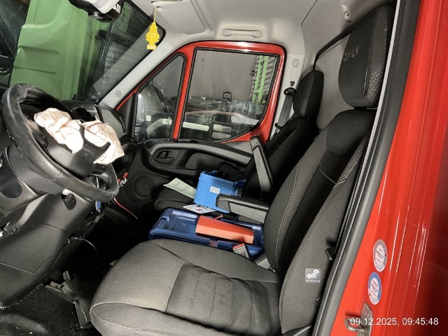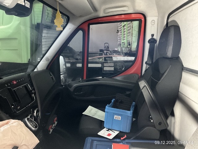 Bordcomputer mit umfangreichen Funktionen, Sitze: 3-Punkt-Automatik-Sicherheitsgurte für Fahrer und Beifahrer, höhenverstellbar, Kurzhaubenfahrerhaus in aerodynamischem Design mit getönten Scheiben, Verbandskasten, Zentralverriegelung mit Fernbedienung getrennt für Fahrerhaus und Laderaum, Digital Uhr, Licht: Follow-Me-Home Funktion, TFT-Farb-Display, Sitze: Beifahrersitz mit Dreipunktgurt auf dem Mittelsitz, Getönte Windschutzscheibe aus Verbundglas, Bordwerkzeug, Fahrwerk: Anbaumöglichkeit für Nebenabtrieb, Vorbereitung Anhängersteckdose, Wartungsanzeige, Sitze: Sitzbezüge aus atmungsaktivem Textil, Assist: Rückfahrwarner akustisch, Spritzschutzlappen an der Vorder- und Hinterachse, Unterlegkeile, Lenkstockhebel für – Stand-, Abblend- und Fernlicht, Signalhorn, Fahrtrichtungsanzeiger, Nebelschlussleuchte – Scheibenwisch-/ -waschanlage, Servolenkung, Klima: Wahlweise Umluft oder Frischluft, 2 DIN-Einbauschächte für Autoradio und EG-Kontrollgerät, Fahrwerk: 2-Kreis-Hydraulikbremsen mit Bremskraftverstärker, Elektrik für Anhängersteckdose, Wagenheber, Licht: Tagfahrlicht, Klima: 4-stufiges, geräuscharmes Gebläse, CAN – Datenbus Architektur im gesamten Fahrzeug, Fahrwerk: Stabilisator an der Hinterachse, Klima: Scheibenbelüftung mit Warm- oder Kaltluft, Türen: Zentralverriegelung mit Fernbedienung, Ablage- und Dokumentenfach, bei Klimaanlage gekühlt, Airbag: Airbag mit Gurtstraffer auf Fahrerseite, Fahrwerk: Hydraulische Stossdämpfer an der Vorder- und Hinterachse, Media: Radiovorbereitung mit 4 Lautsprechern und Verkabelung, Fahrwerk: Leiterrahmen aus durchgehenden C-Längsträgern mit Querträgern, Licht: Scheinwerfer Halogen, Armaturenbrett mit integriertem Ganghebel, Sitze: Fahrersitz mit Kopfstütze, in Höhe, Neigung und Längsrichtung verstellbar, Kraftstoffvorrats- und Kühlwassertemperaturanzeige, Partikelfilter und Oxydationskatalysator, Fahrwerk: Unterbodenschutz, Eco-Smart-Generator 12 V / 220 A, Rückspiegel mit sphärischem Spiegelglas, Weitwinkelspiegel, Blinker integriert, Licht: Parklichtsteuerung, Licht: Kabinenbeleuchtung und zusätzliches Spot-Light, Klima: Thermostatgeregelte Frischluft-Warmwasserheizung, Räder: Stahlräder 16J, Kleiderhaken, Ablagen mit Flaschenhalter in den Türtaschen, Sitze: Beifahrerdoppelsitzbank mit Staufach, Drehzahlmesser, Licht: Seitenmarkierungsleuchten, Kontrollleuchten für Warnblinkanlage, Fahrtrichtungsanzeiger mit Komfortblinken, Öldruck, Ölstand, Batterie, Stand-, Abblend- und Fernlicht, Sitze: Mittelsitz der Beifahrersitzbank mit 3-Punkt Automatik Sicherheitsgurt, Teilverzinkte Karosserie, Mehrstufige Scheibenwischanlage mit 2 Wischern, Fahrwerk: Stabilisator an der Vorderachse, Intervallschaltung, Tachometer mit Trip-Computer, Lackierung: Uni Lackierung, Getriebe: 8-Stufen-Automat, Elektrische Fensterheber vorne, Geschwindigkeitsbegrenzer 160 km/h, Fahrwerk: Scheibenbremsen an der Vorder- und Hinterachse, Licht: Laderaumbeleuchtung über Heck- und Schiebetür mit Türkontakten, Warnleuchte, Elektrische Scheibenwaschpumpe mit Mehrfachdüsen an den Wischerarmen, Licht: Leuchtweitenregulierung, Warndreieck, Assist: Elektronisches Stabilitäts Programm (ESP) adaptiv, – Anfahrassistent (AAS), – Anti-Blockier-System (ABS), – Anti-Schlupfregelung (ASR), – elektronischer Bremskraft-Verteilung (EBV), – hydraulischem Bremsassistent (HBA), – Motor-Schleppmoment-Regelung (MSR), – Roll Movement Intervention (RMI), – Roll Over Mitigation (ROM), – Anhängerstabilisierung (TSM), Wegfahrsperre elektronisch, Rückspiegel elektrisch verstell und heizbar